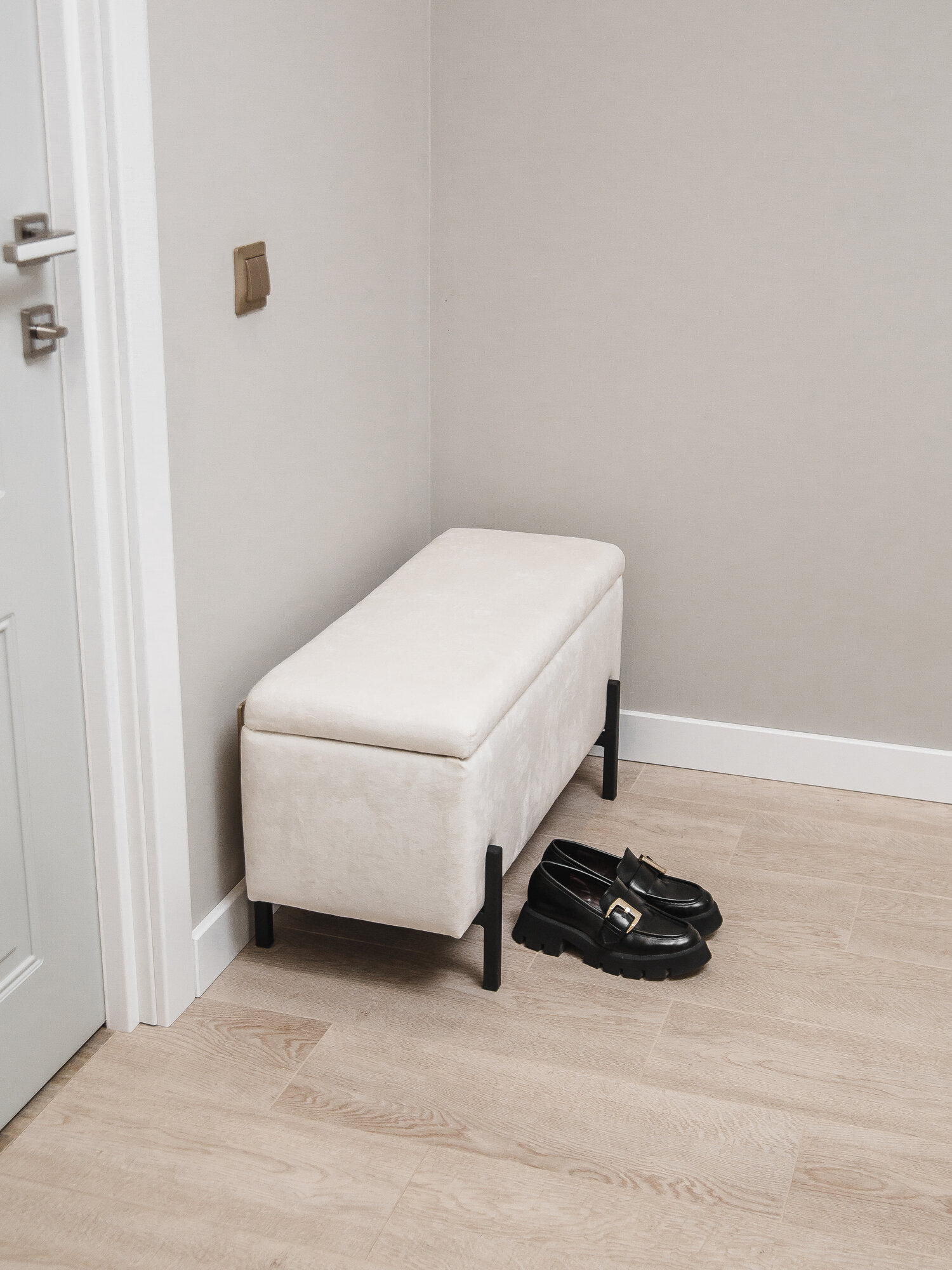 Пуфик в прихожую, пуф банкетка с ящиком для хранения 80*35*42, бежевый