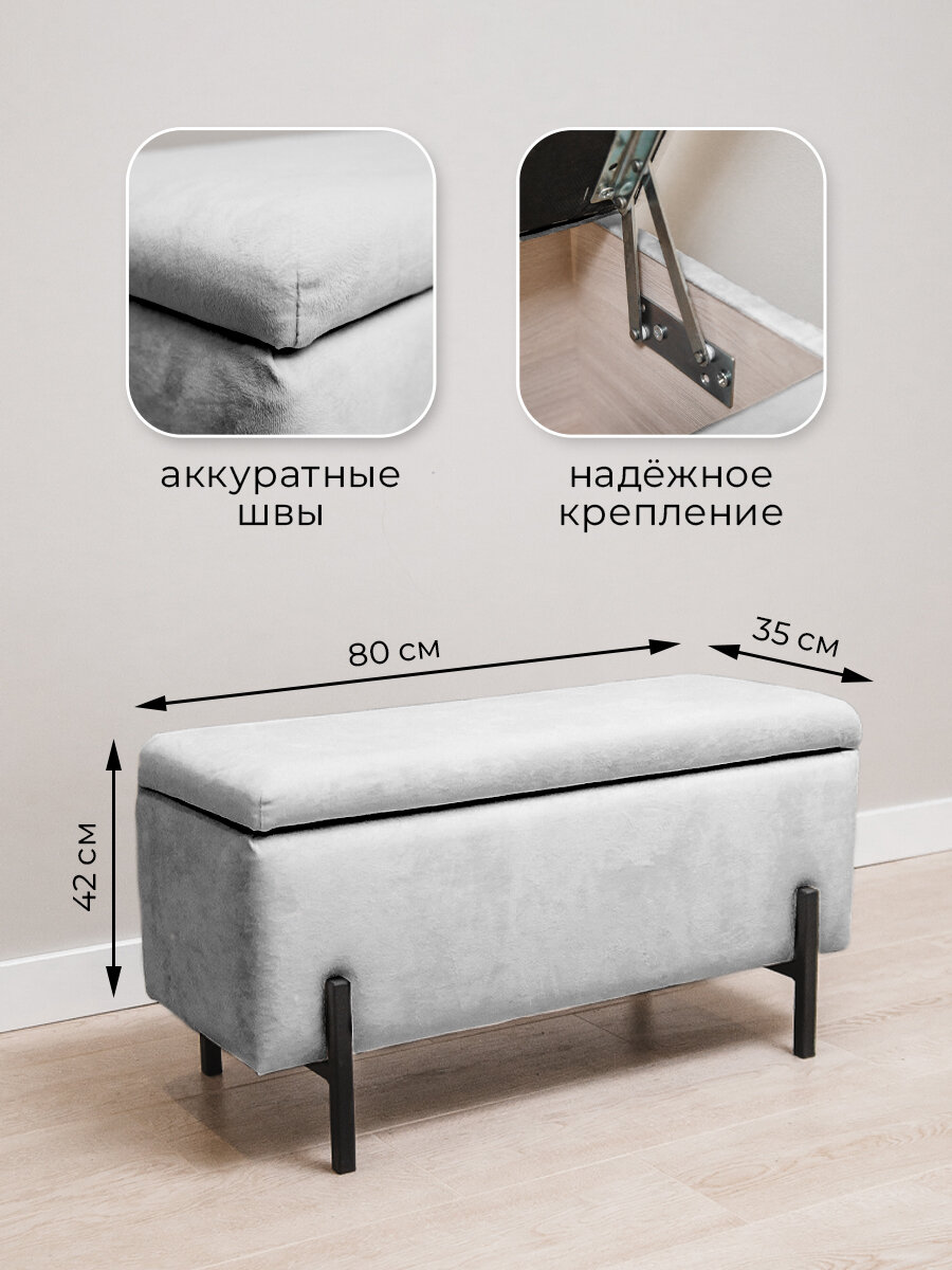 Пуфик в прихожую, пуф банкетка с ящиком для хранения 80*35*42, серый интересное: