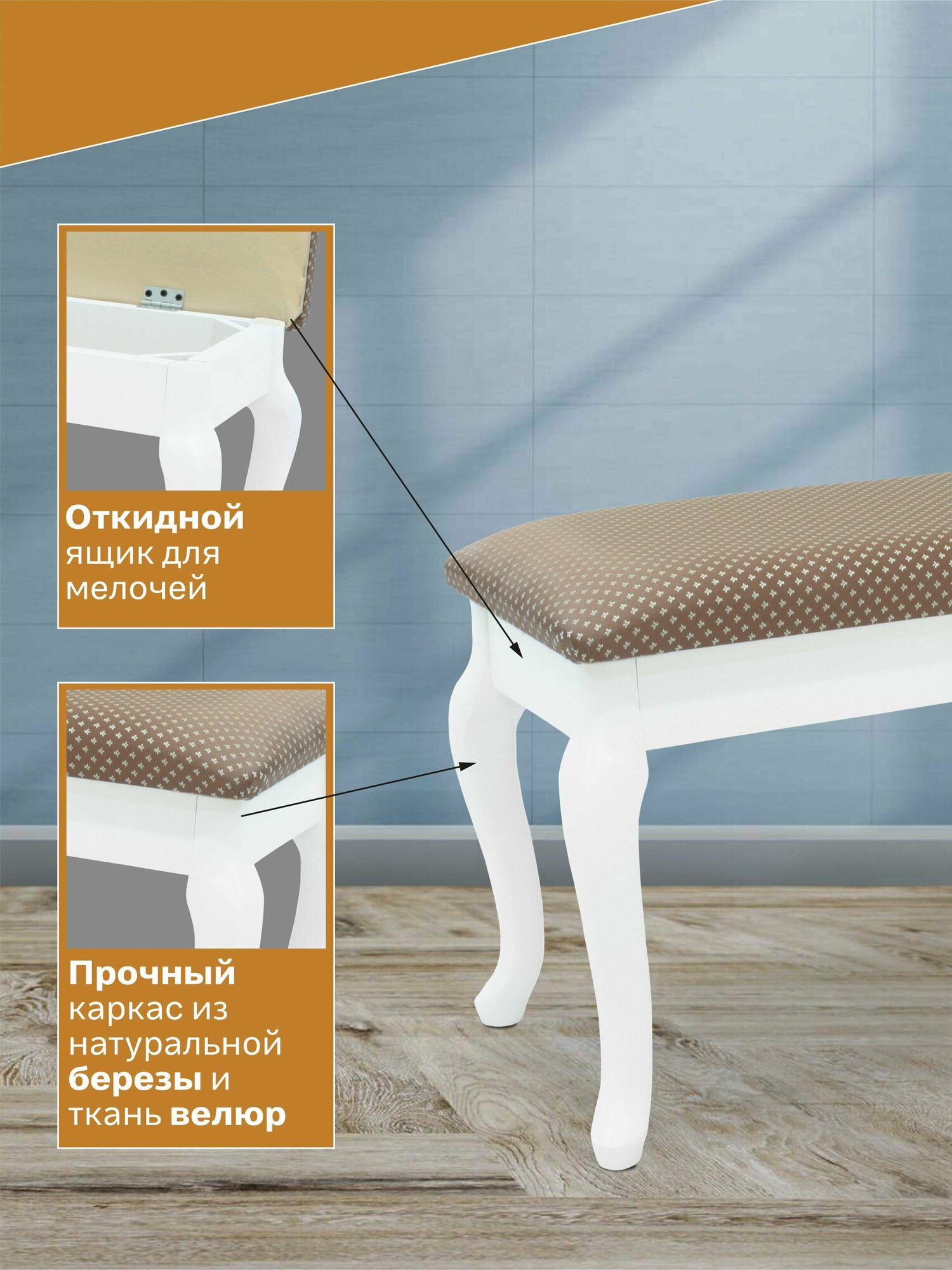 Банкетка Мебелик в прихожую Вивальди с ящиком для хранения цвет белый, ткань коронка