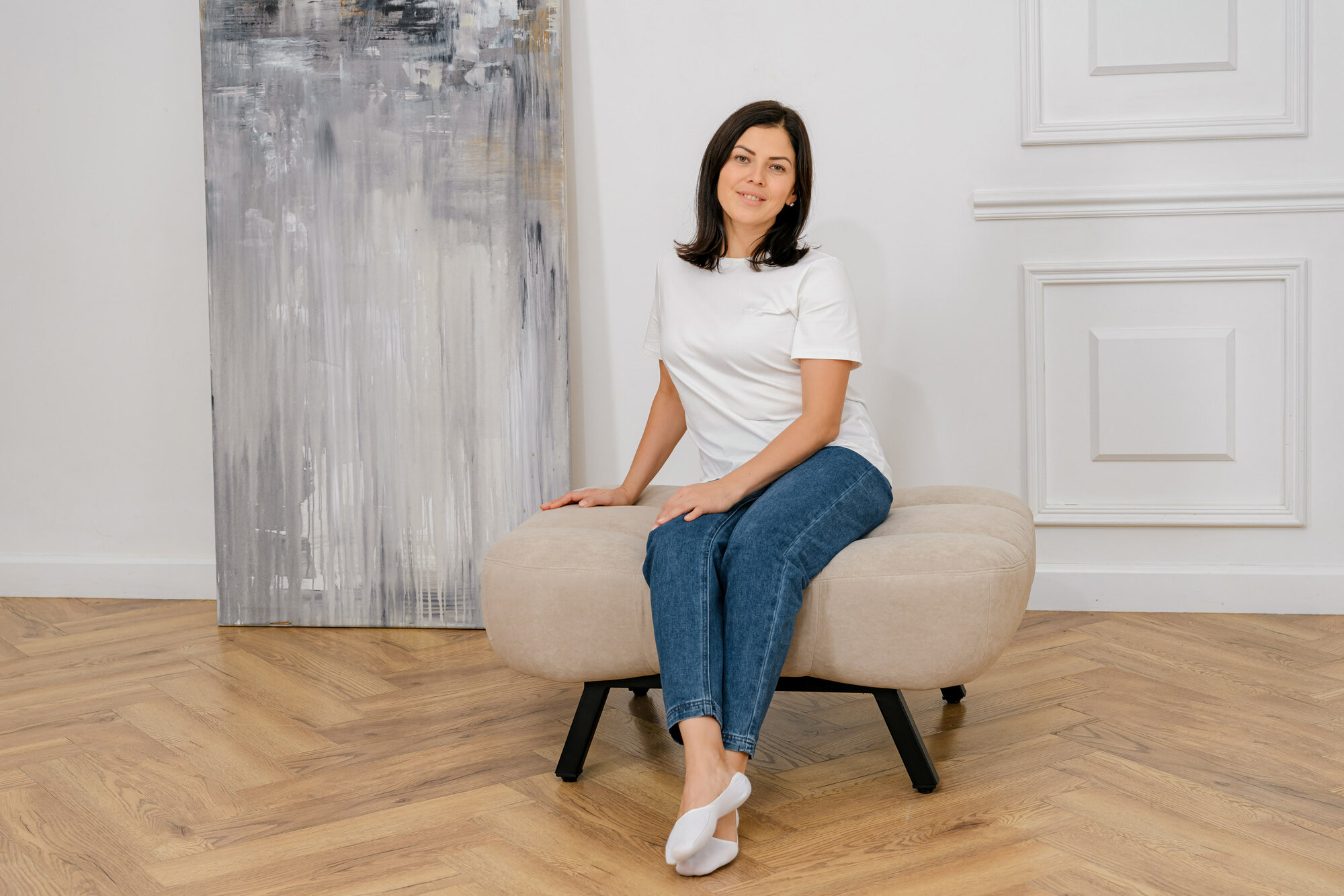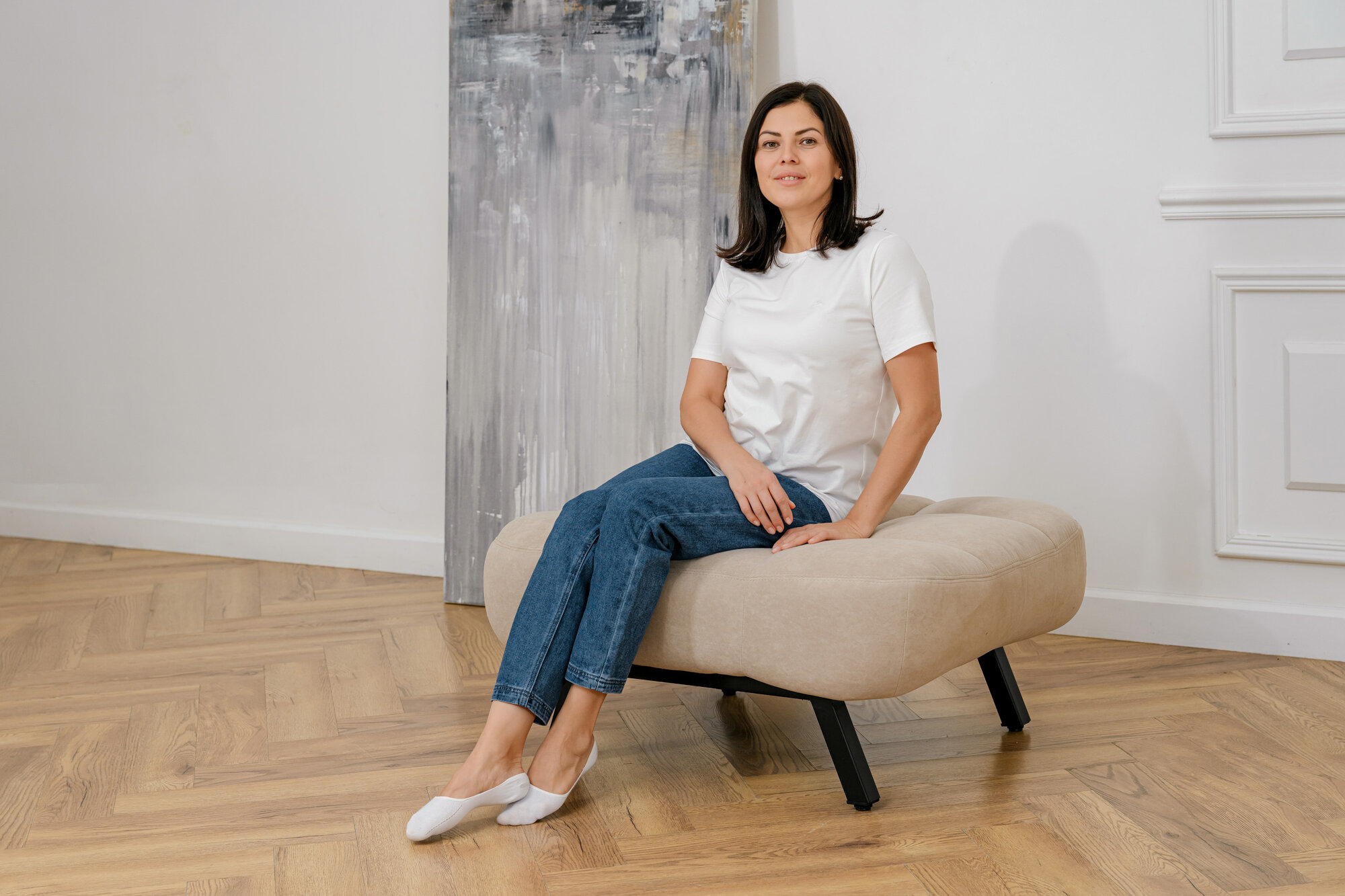 Пуф Brendoss 308 лофт, материал антивандальный велюр, цвет молочный
