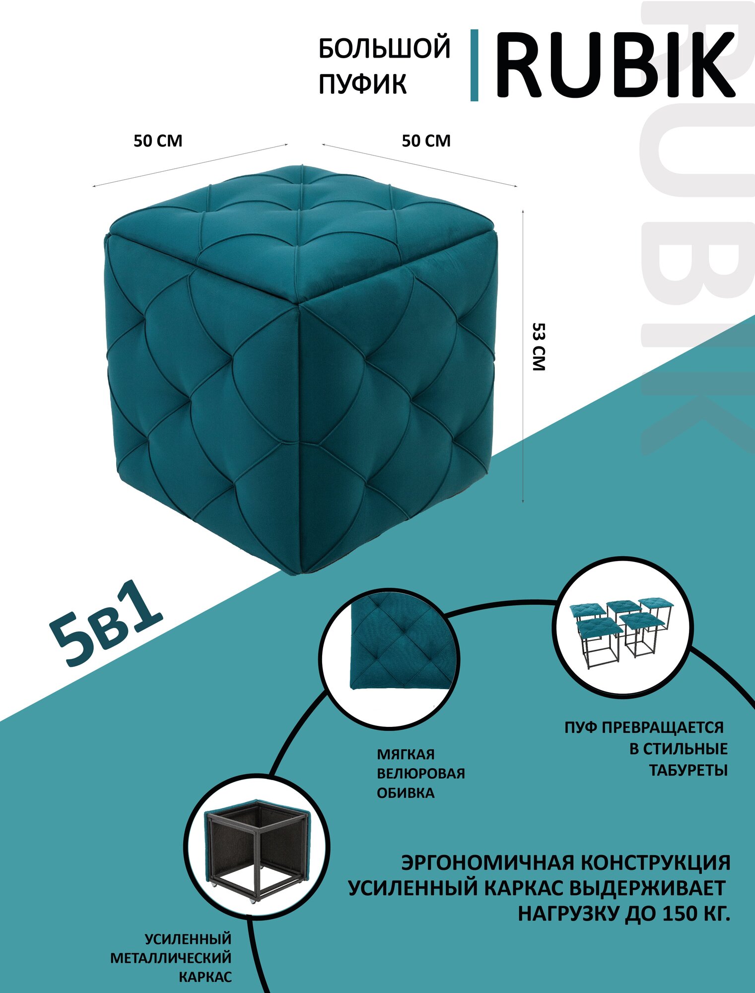 СохранитьБольшой пуфик RUBIK трансформер 5 в 1 пуф для прихожей, зеленый велюр интересное: