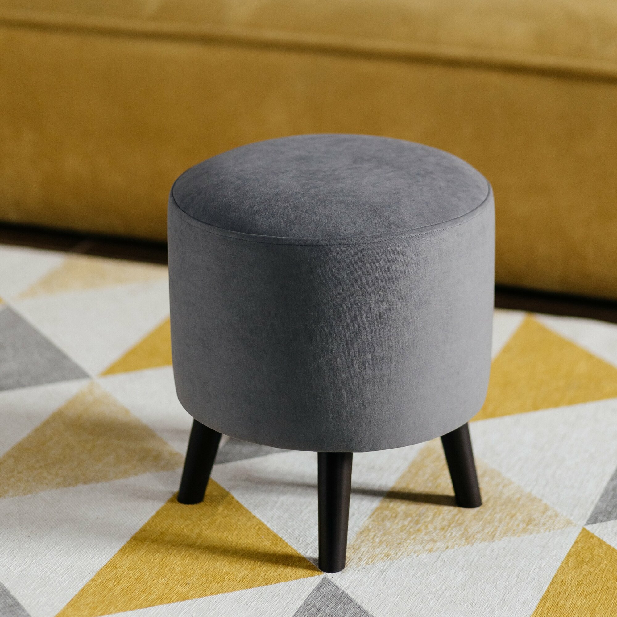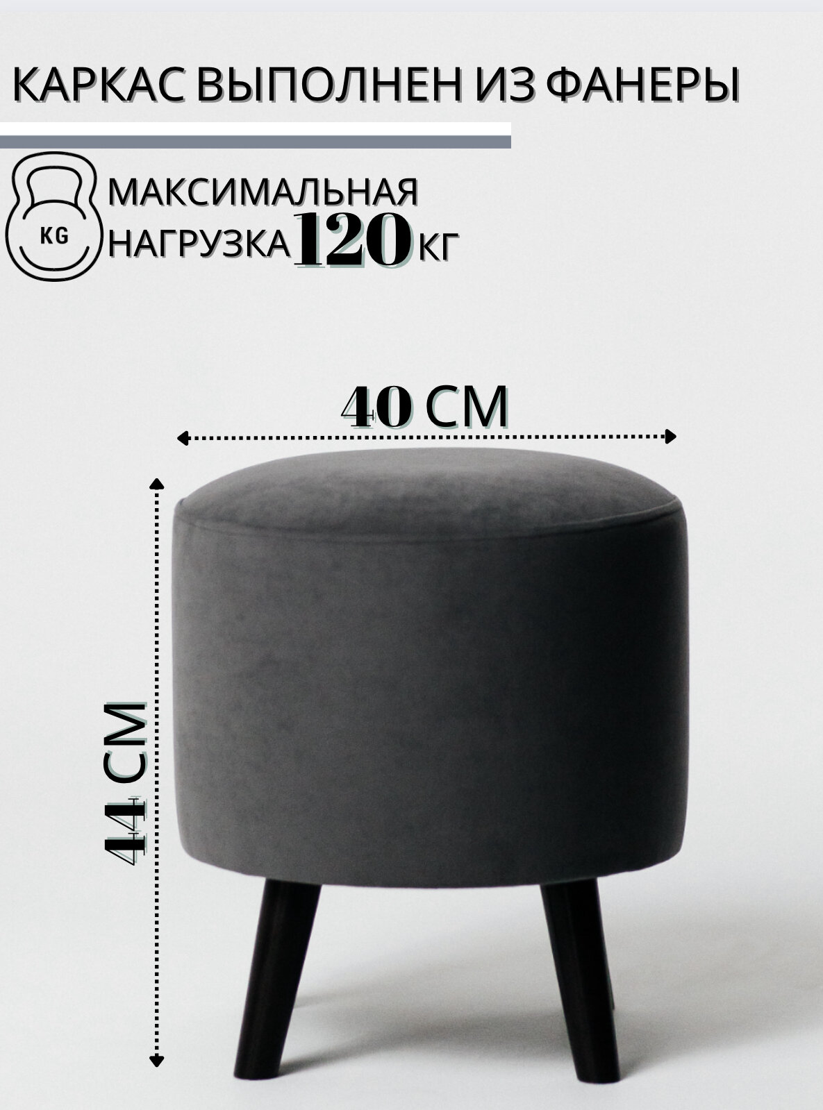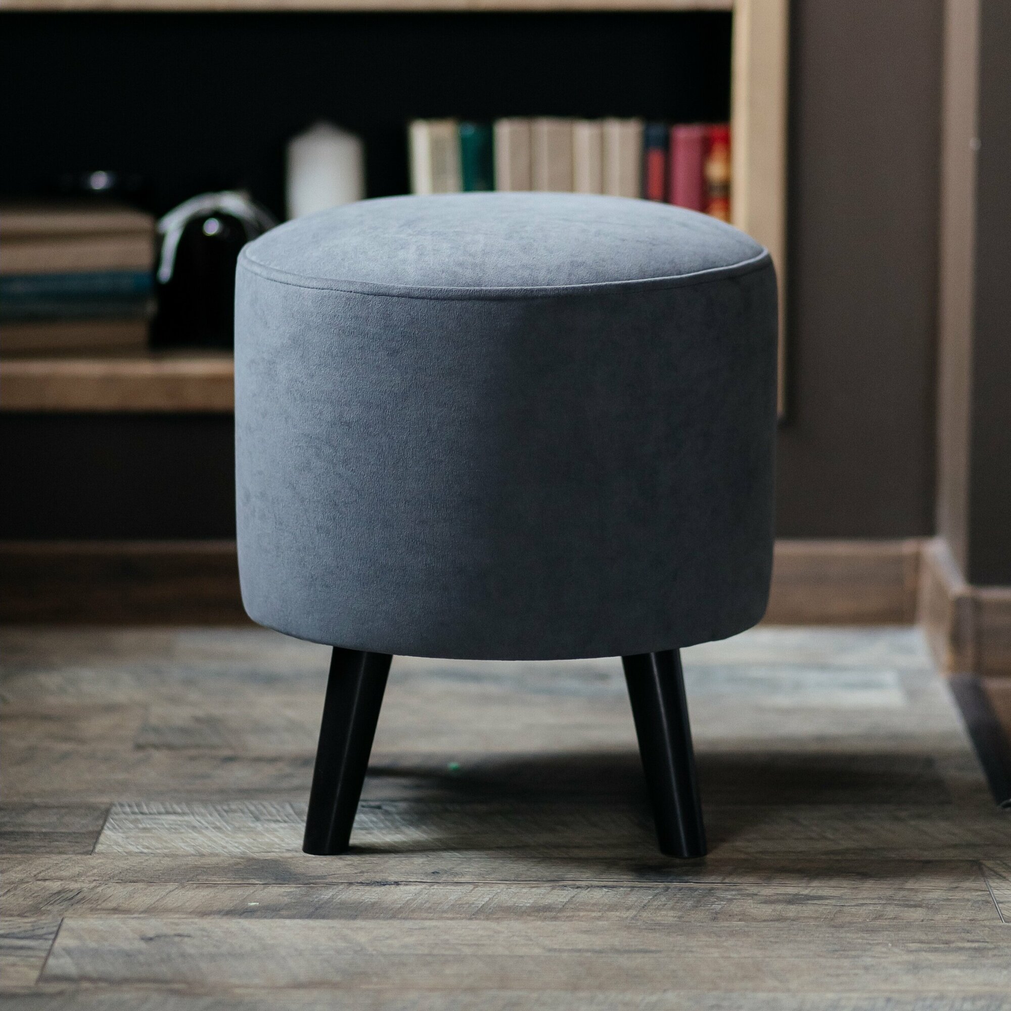 Пуф, серый, круглый, на деревянных ножках, в спальню и в прихожую