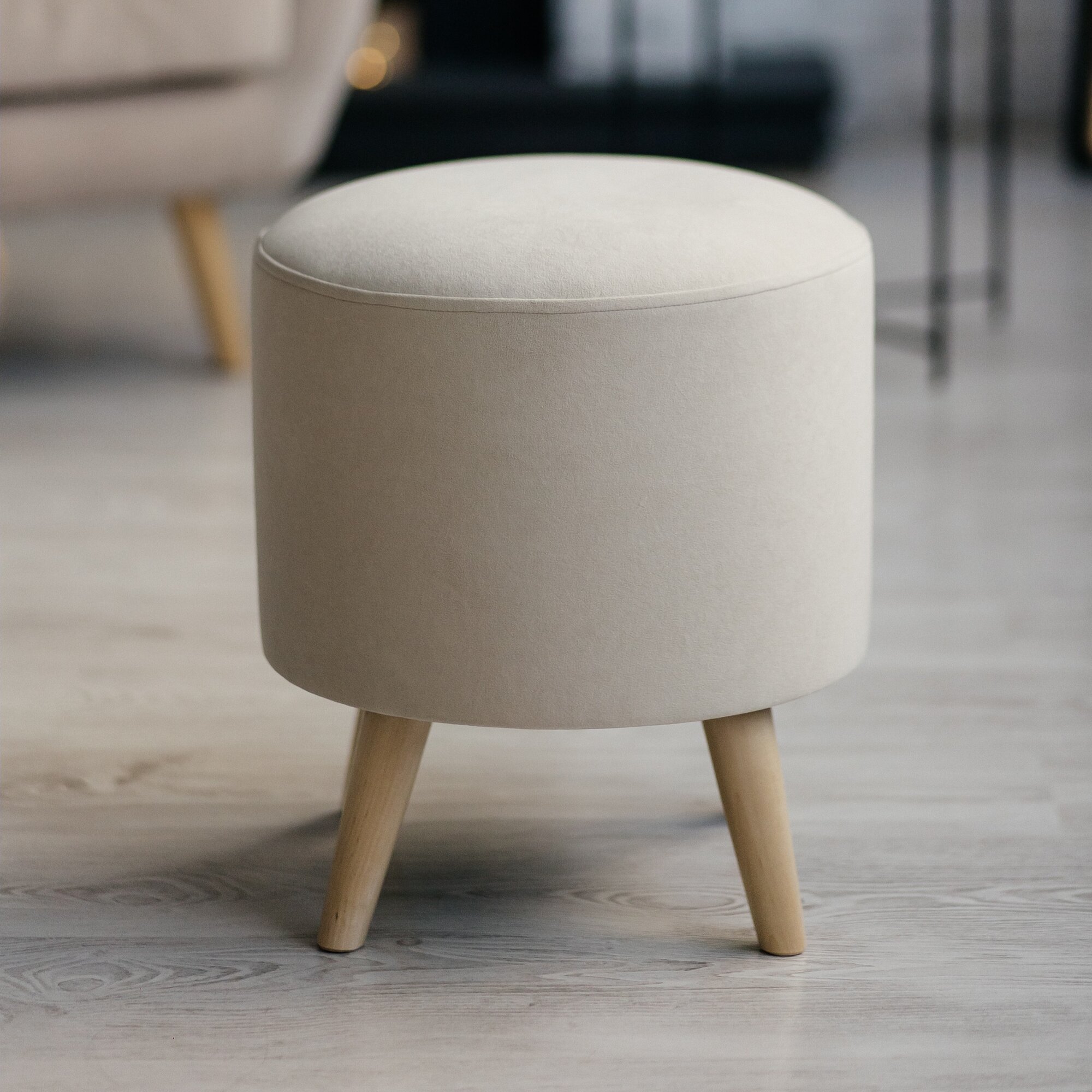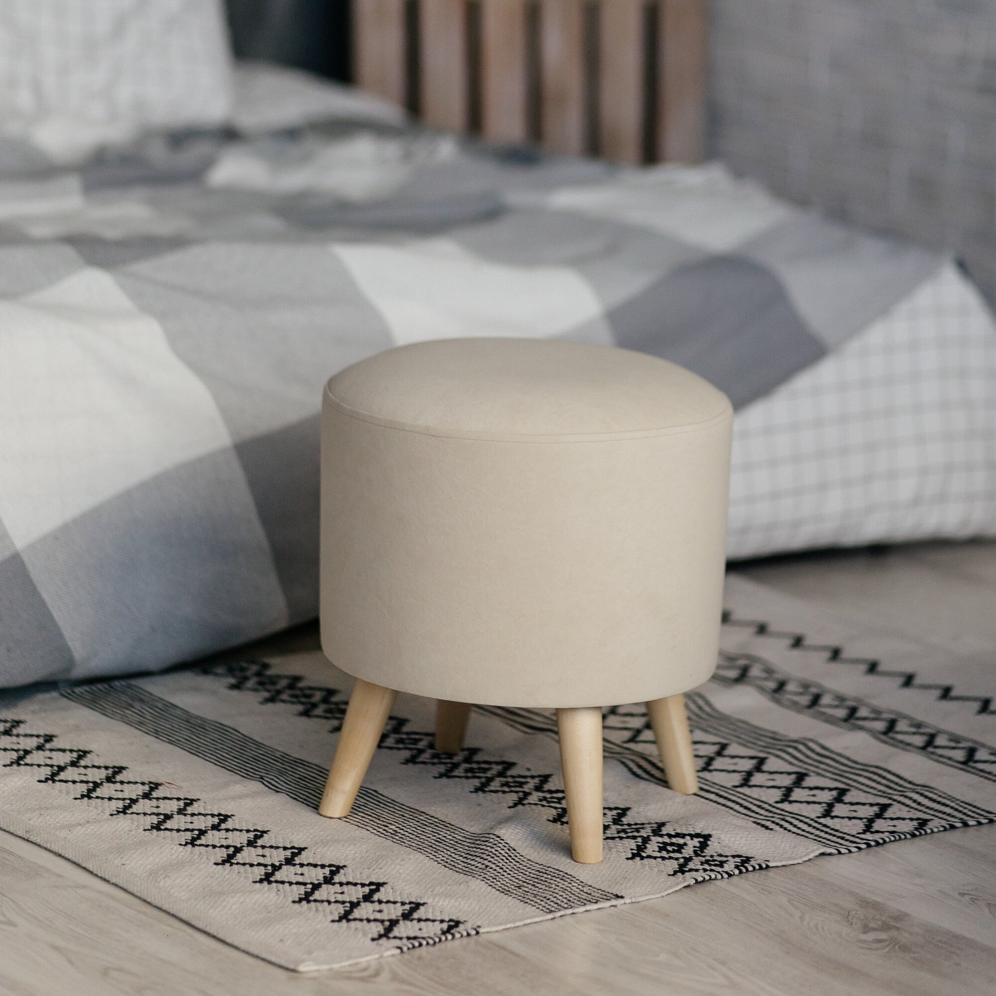 Купить Пуф, бежевый, круглый, на деревянных ножках, в спальню и в прихожую