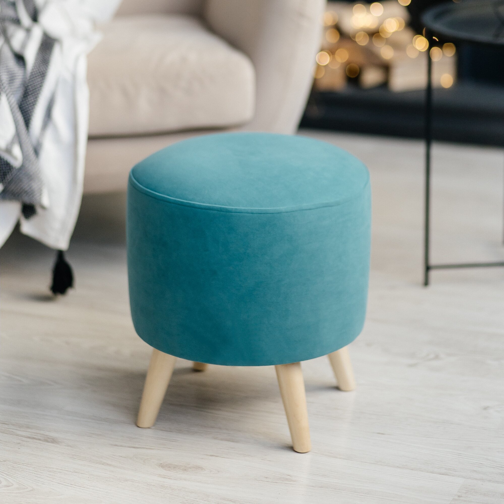 Пуф, бежевый, круглый, на деревянных ножках, в спальню и в прихожую