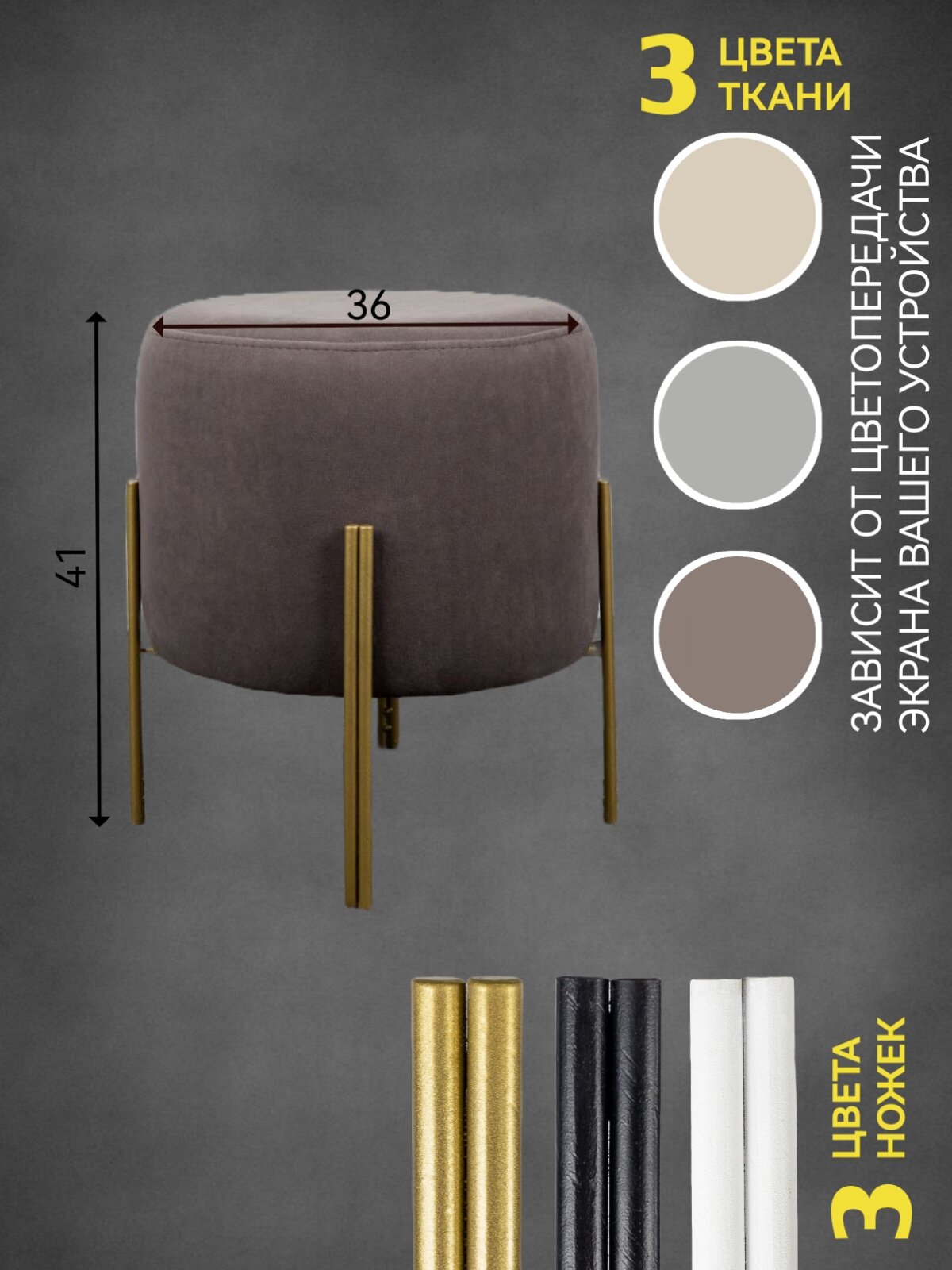 СохранитьПуфик для прихожей 1 шт, Azzurro mebel, серо-коричневый, золотые ножки интересное:
