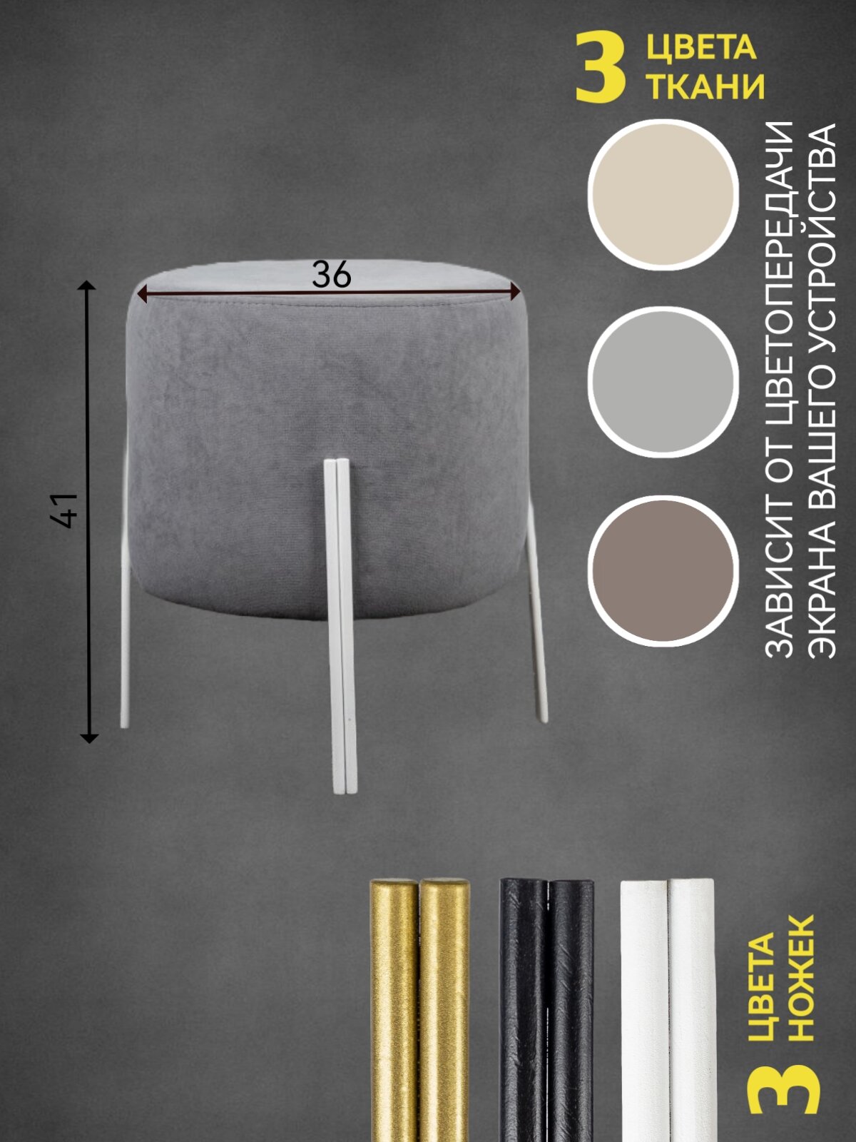 Пуфик для прихожей 1 шт, Azzurro mebel, серый, золотые ножки