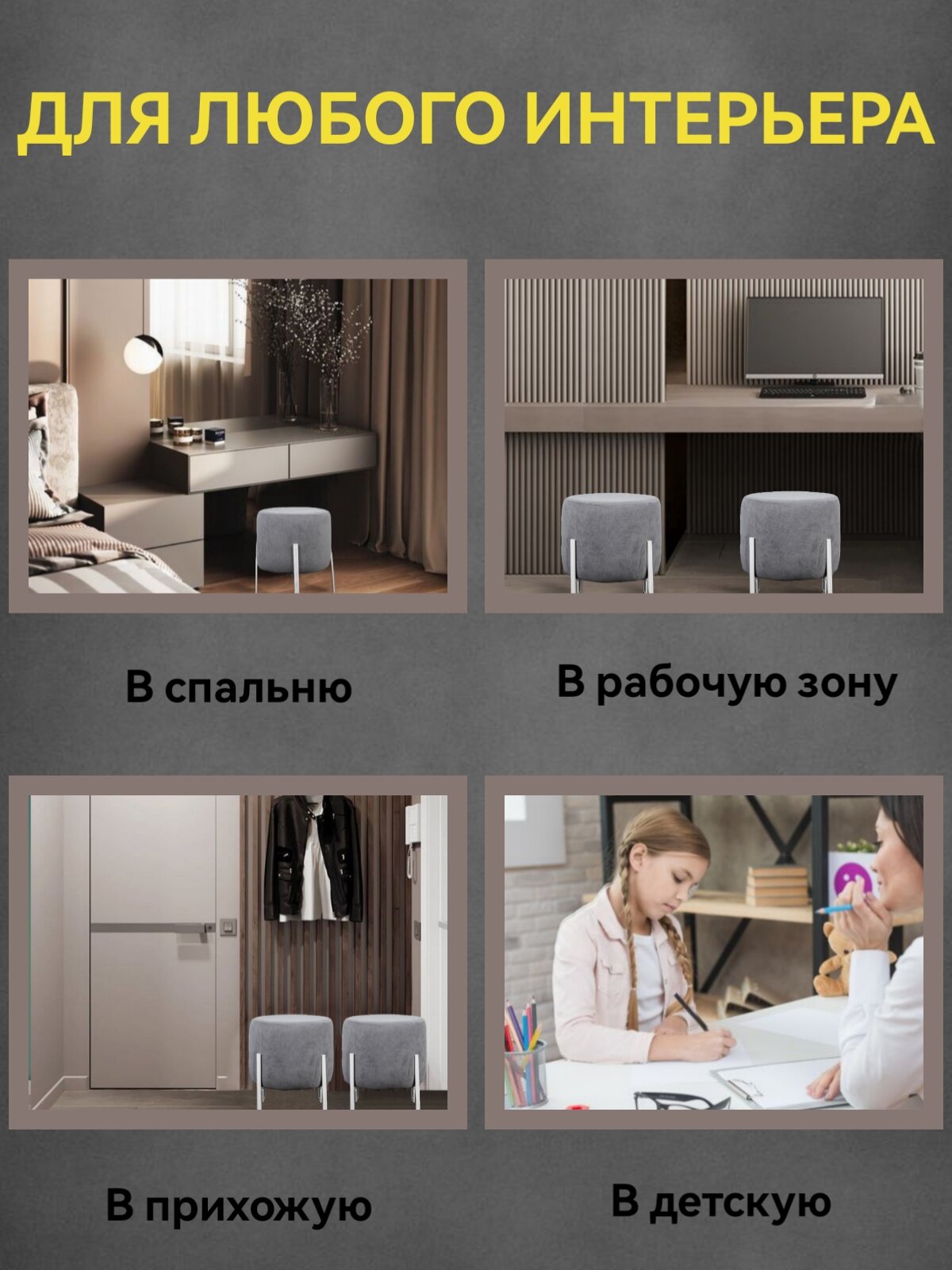 Пуфик для прихожей 1 шт, Azzurro mebel, серый, черные ножки