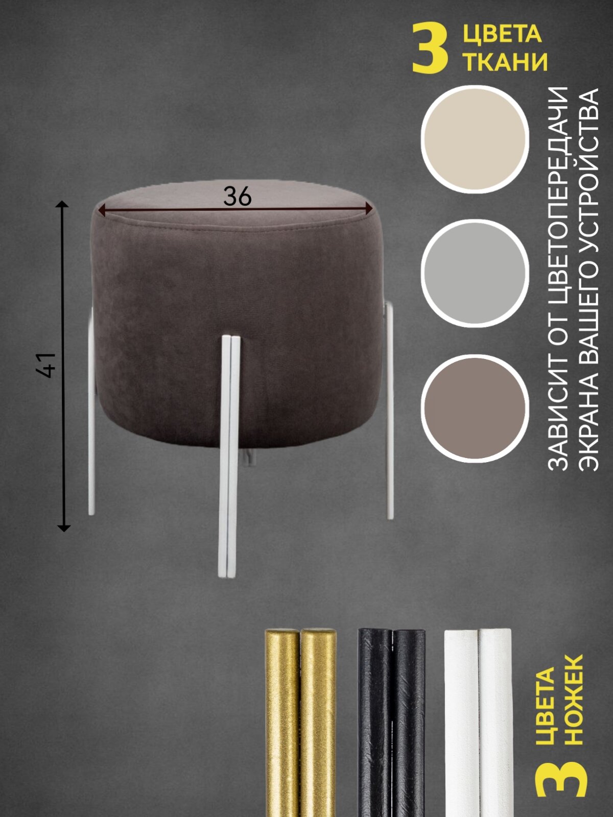 Пуфик для прихожей 1 шт, Azzurro mebel, серо-коричневый, черные ножки