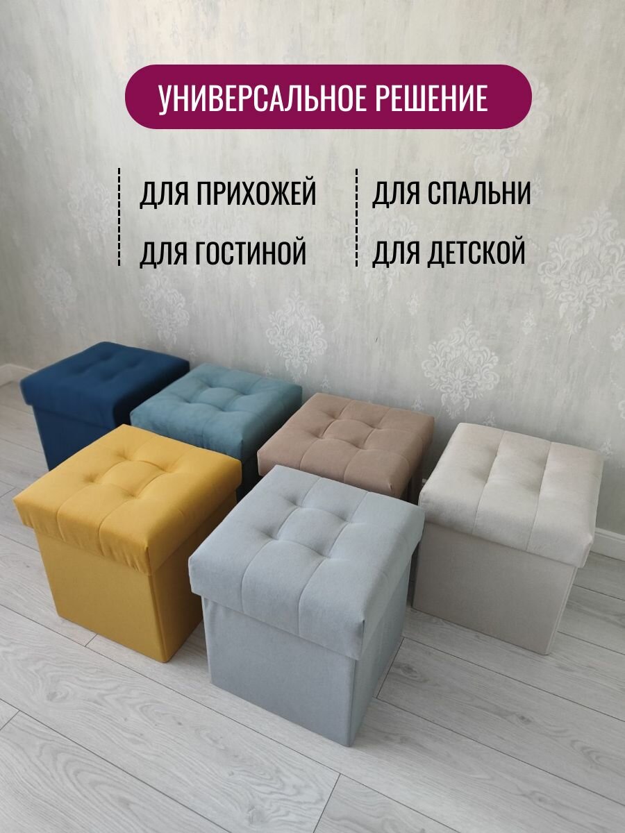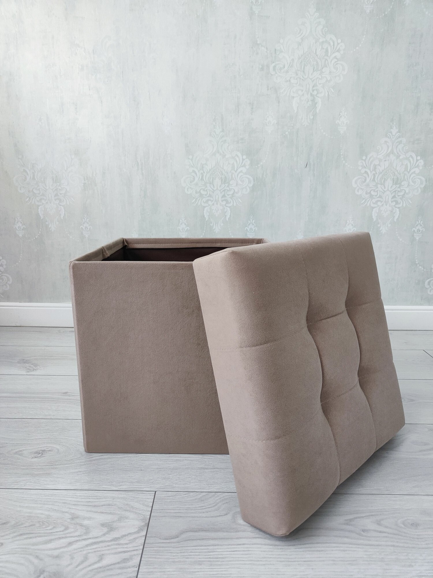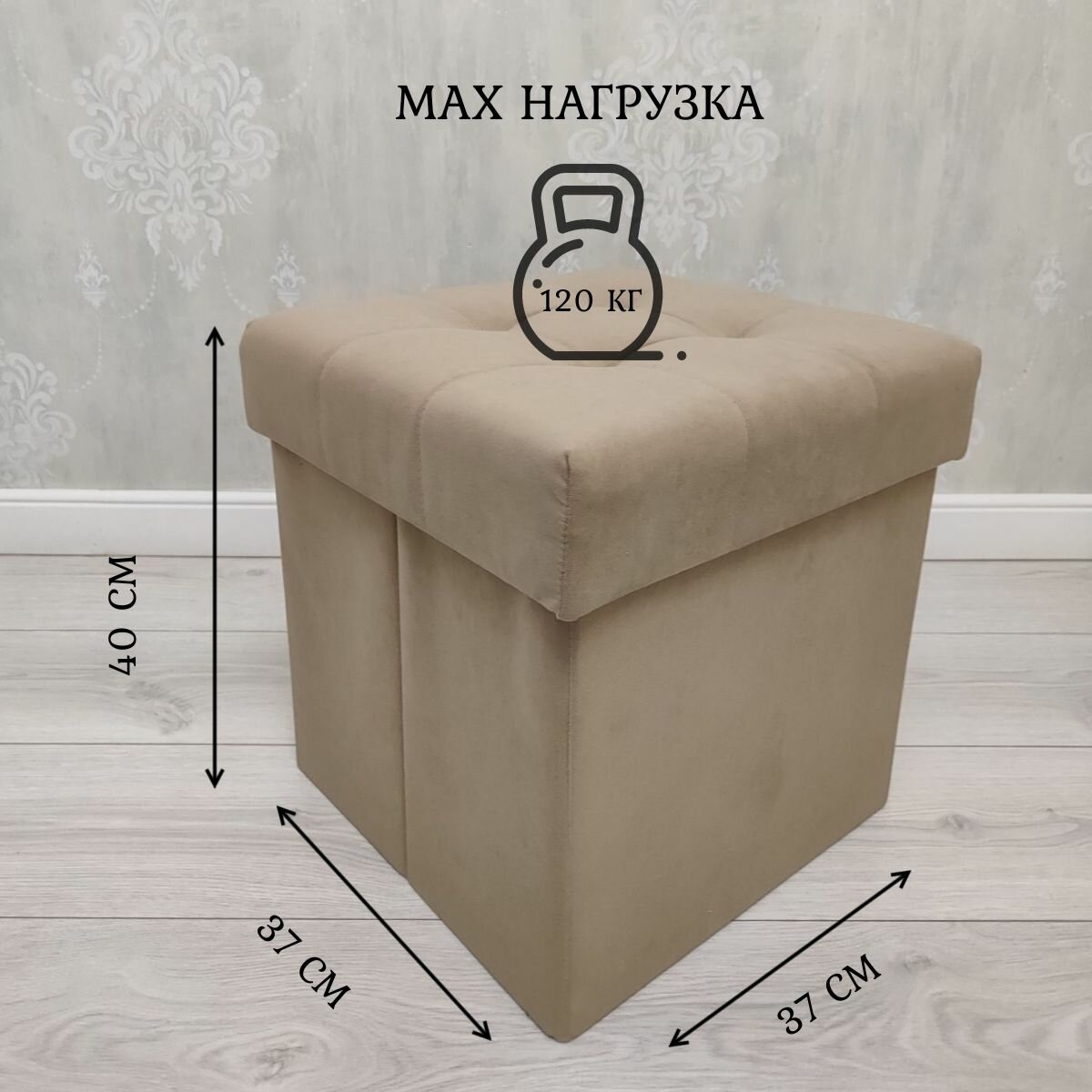 Пуфик, пуф в прихожую с ящиком для хранения складной 37*37*40 см, бежевый
