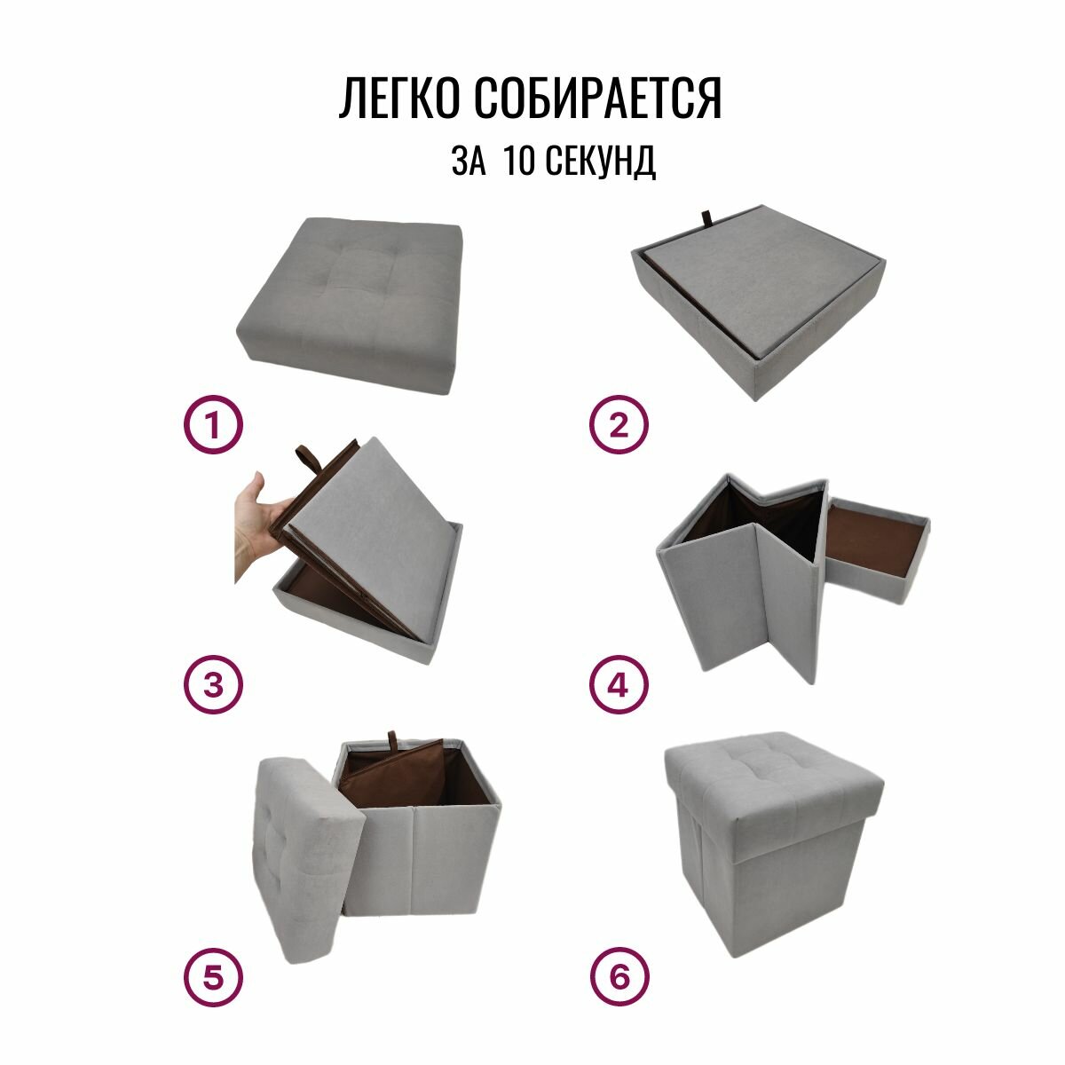 Пуфик, пуф в прихожую с ящиком для хранения складной 37*37*40 см, цвет серый