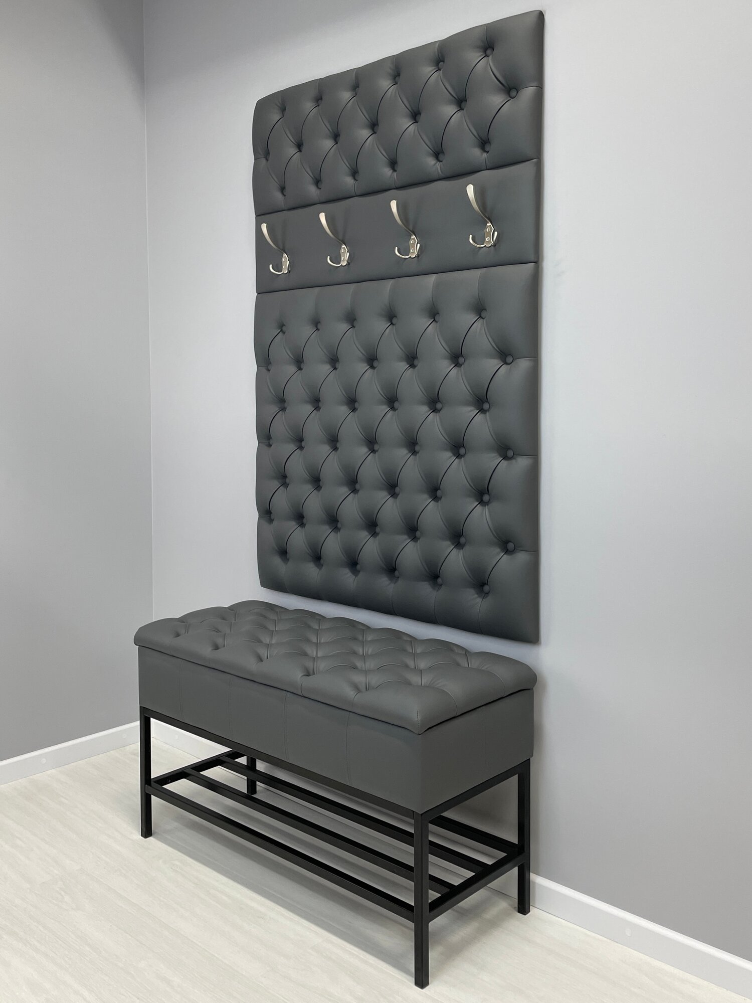 Банкетка в прихожую, в спальню, обувница, для обуви. Пуфик в прихожую с ящиком, с сидением. Пуф черный