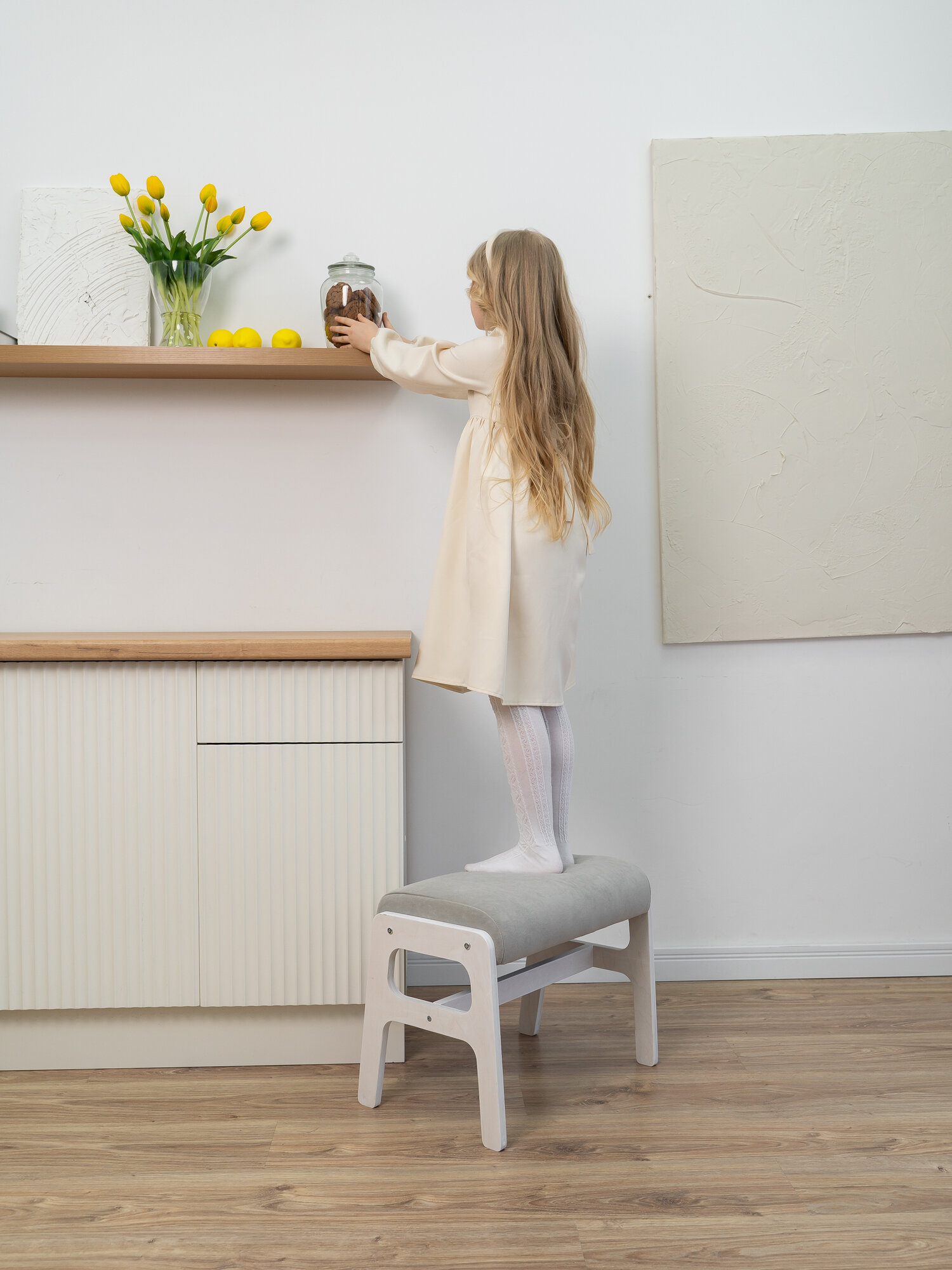 Пуф банкетка на ножках ZASIDELIS ЧИЛ для прихожей дома и офиса светло-серый/белый, из велюра, 52х30х41 см, до 100 кг