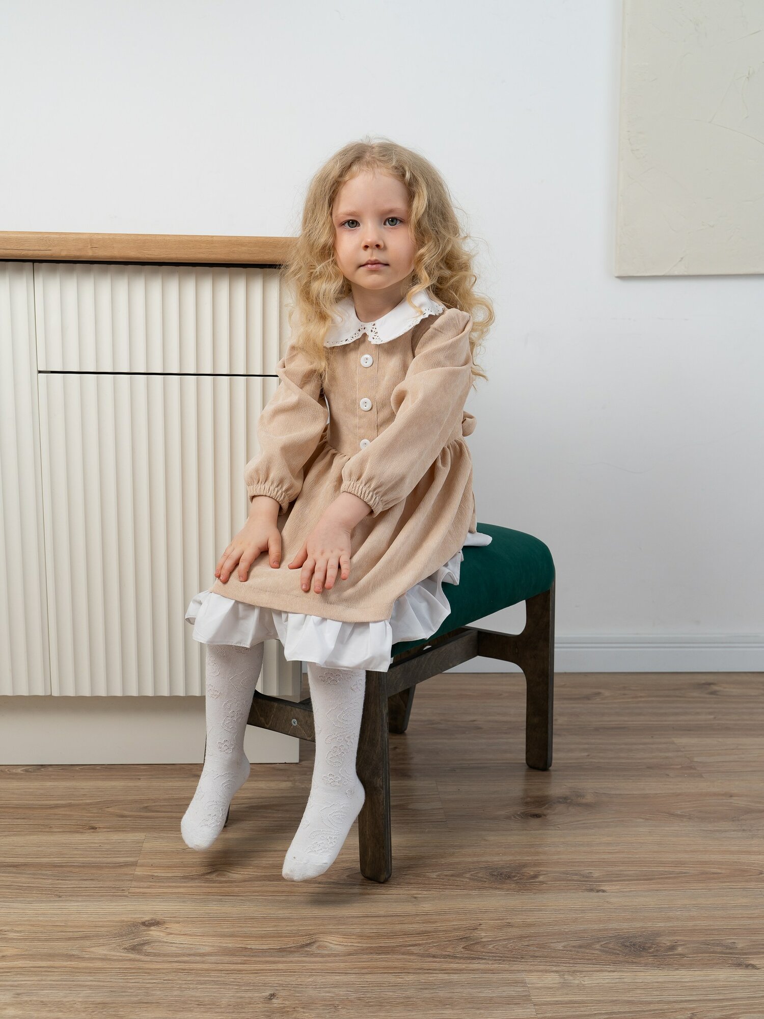 Пуф банкетка на ножках ZASIDELIS ЧИЛ для прихожей дома и офиса темно бежевый/белый, из велюра, 52х30х41 см, до 100 кг