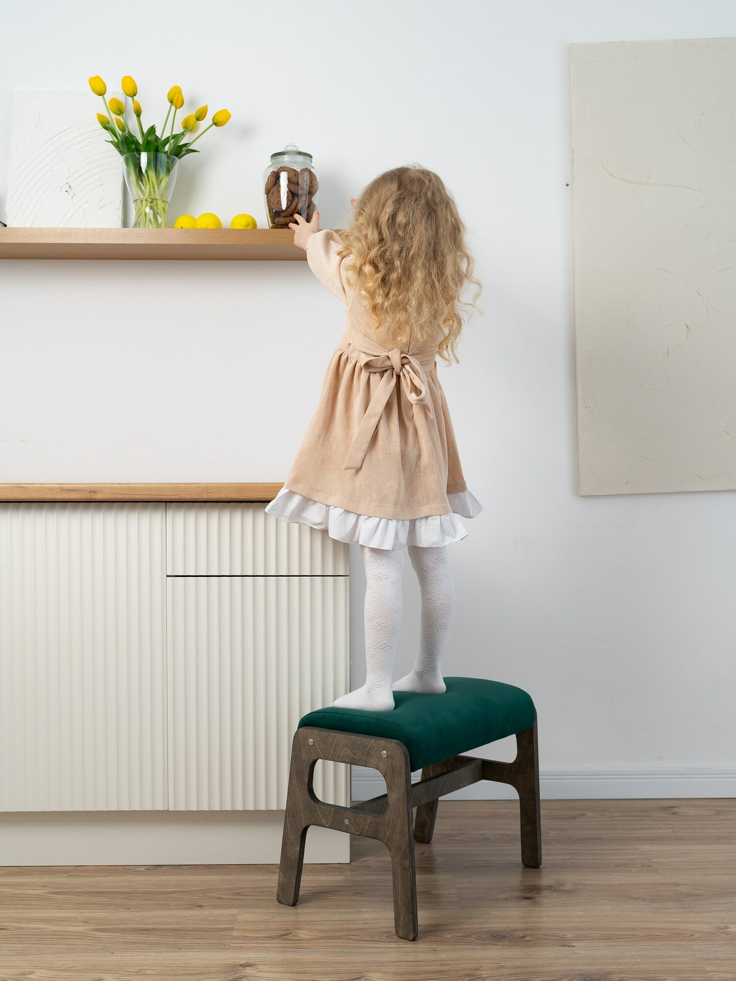 Пуф банкетка ZASIDELIS ЧИЛ для прихожей на ножках, велюр, салатовый/коричневый, 31х52x41 см, до 100 кг