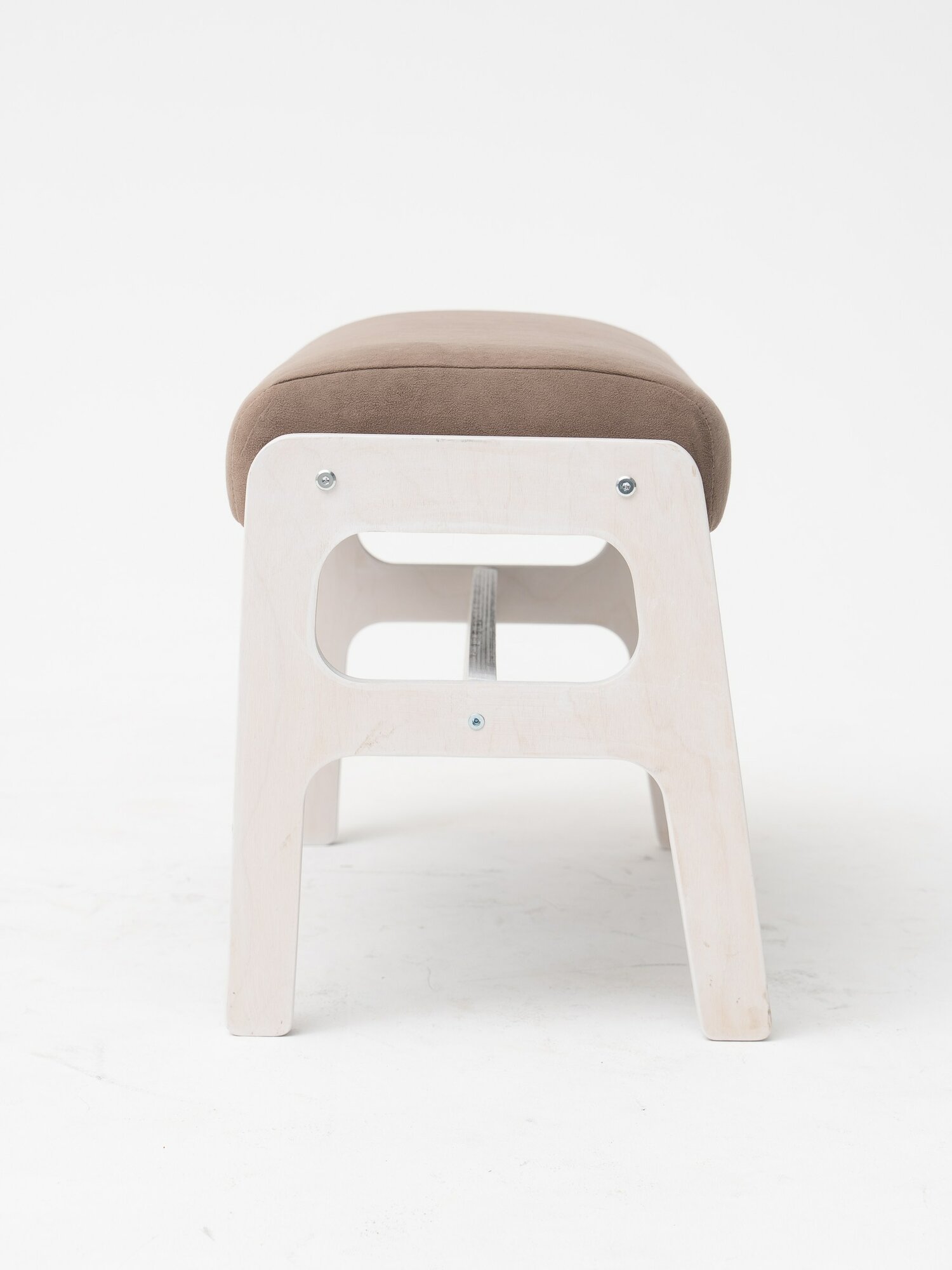 Пуф банкетка на ножках ZASIDELIS ЧИЛ для прихожей дома и офиса темно бежевый/белый, из велюра, 52х30х41 см, до 100 кг