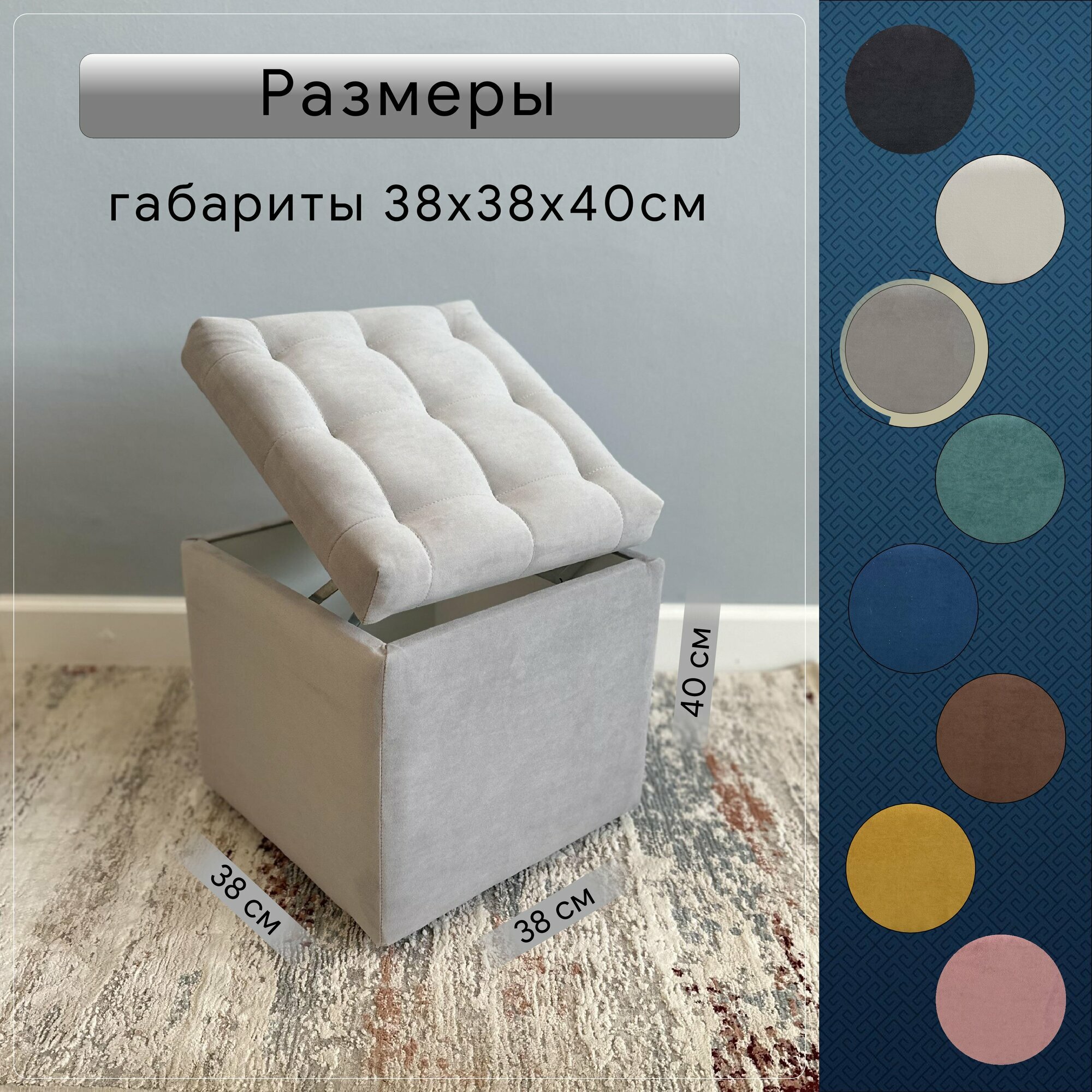 Пуфик в прихожую спальню с ящиком для хранения, 38х40х38, темно-бежевый