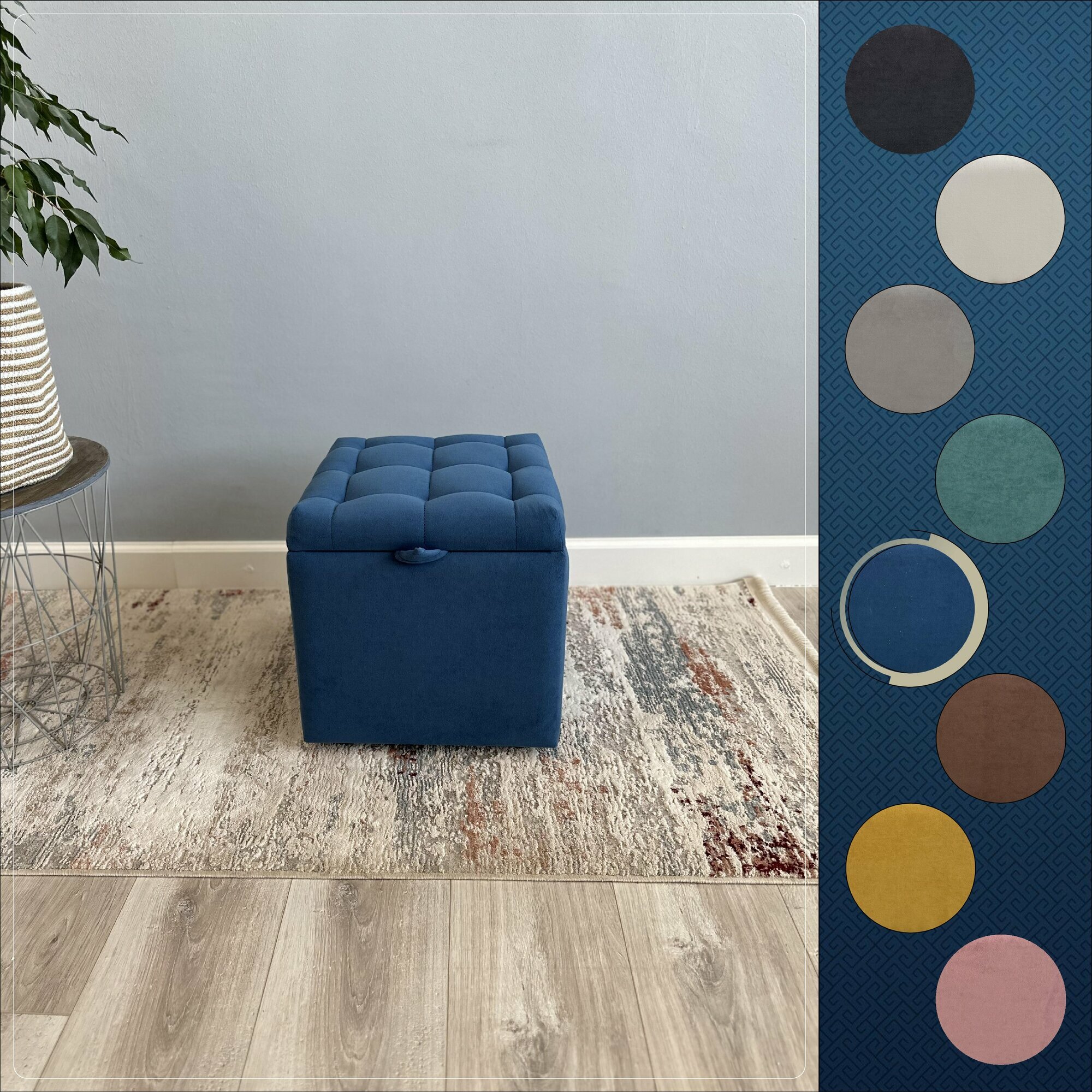 Пуфик в прихожую спальню с ящиком для хранения, 38х40х38, бирюзовый