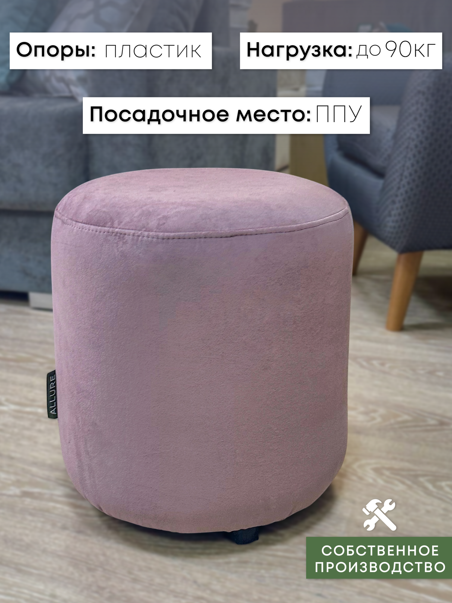 Пуф пуфик круглый для спальни и прихожей, ALLURE, 40x40x42 см, велюровый розовый интересное: