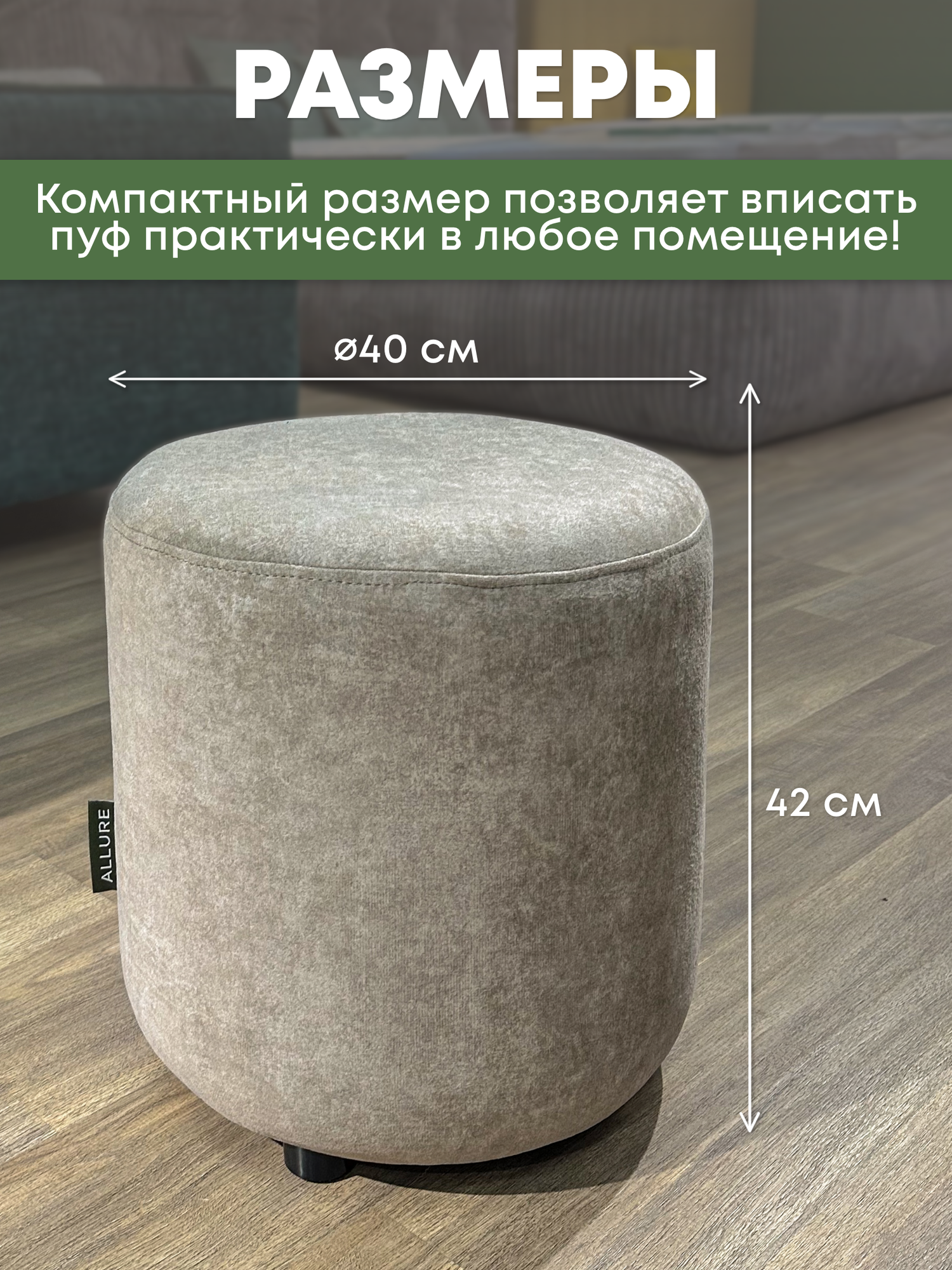 Пуф пуфик круглый для спальни и прихожей, ALLURE, 40x40x42 см, велюровый коричневый интересное: