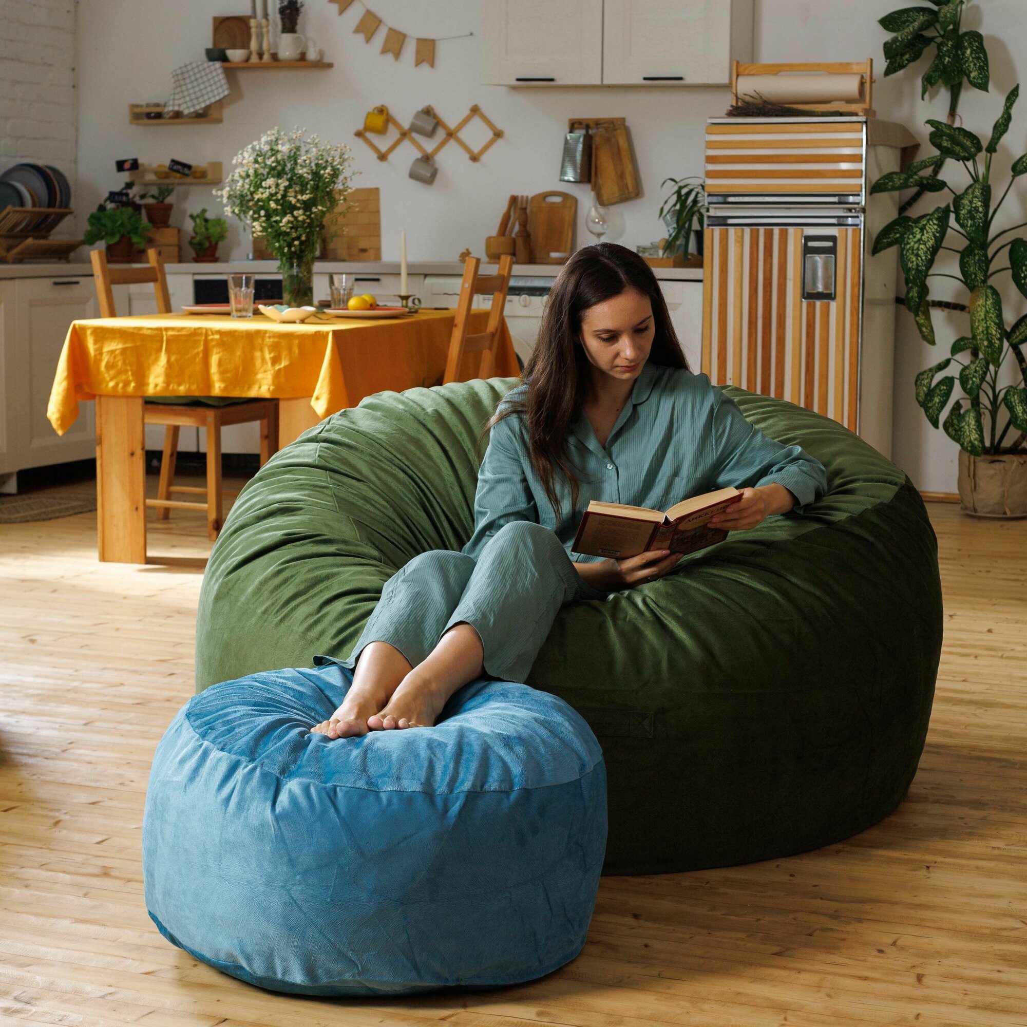 Пуфик в прихожую и для ног Bubble Bag 70х30 бескаркасный пуф антивандальный велюр Зеленый
