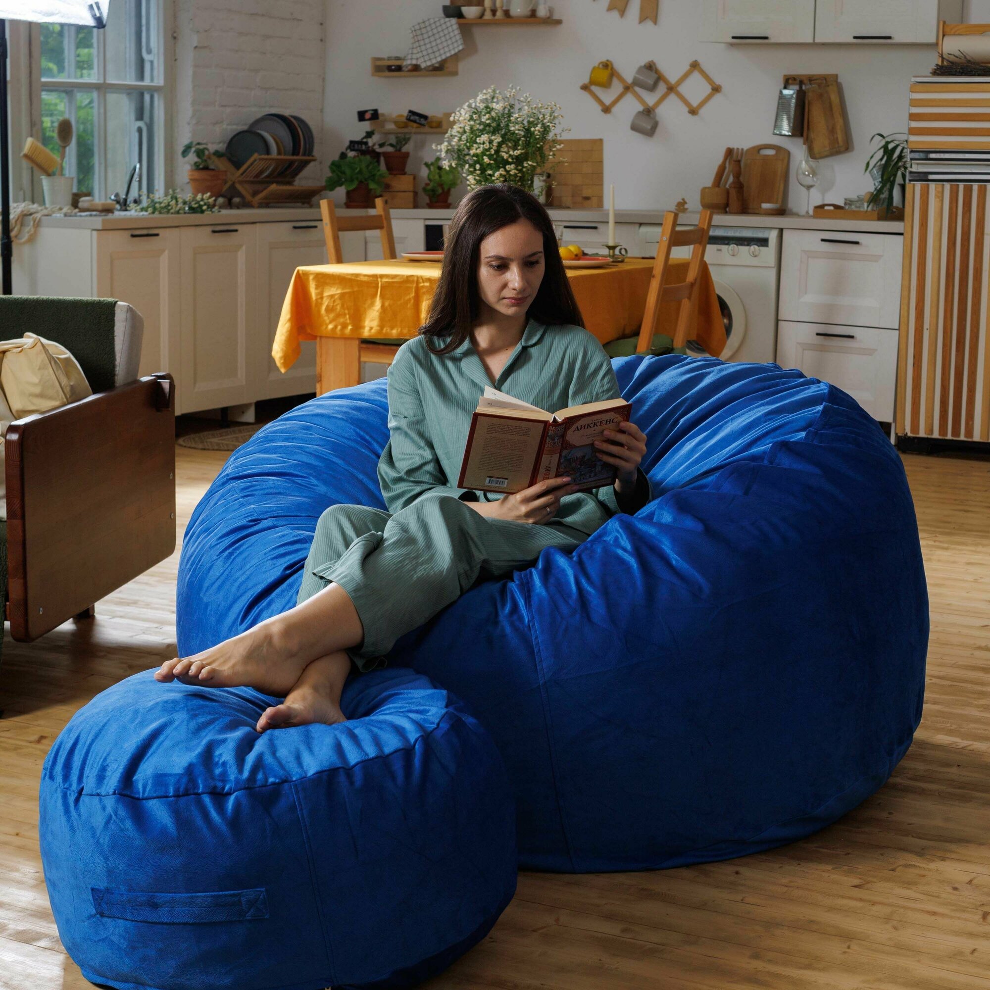 Пуфик в прихожую и для ног Bubble Bag 70х30 бескаркасный пуф антивандальный велюр Синий