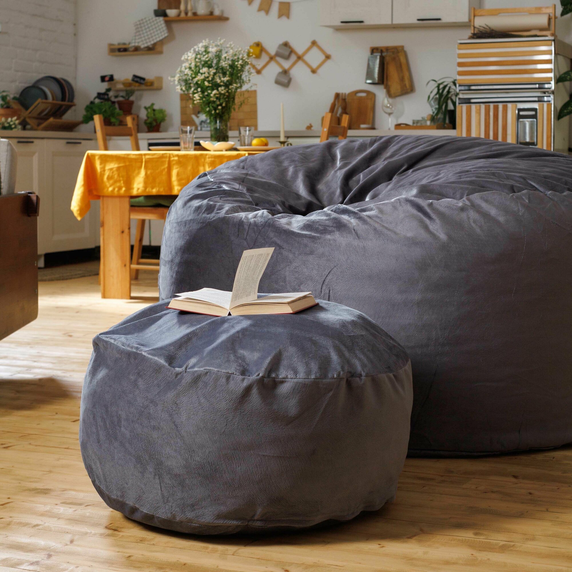 Пуфик в прихожую и для ног Bubble Bag 70х30 бескаркасный пуф антивандальный велюр Мокрый асфальт