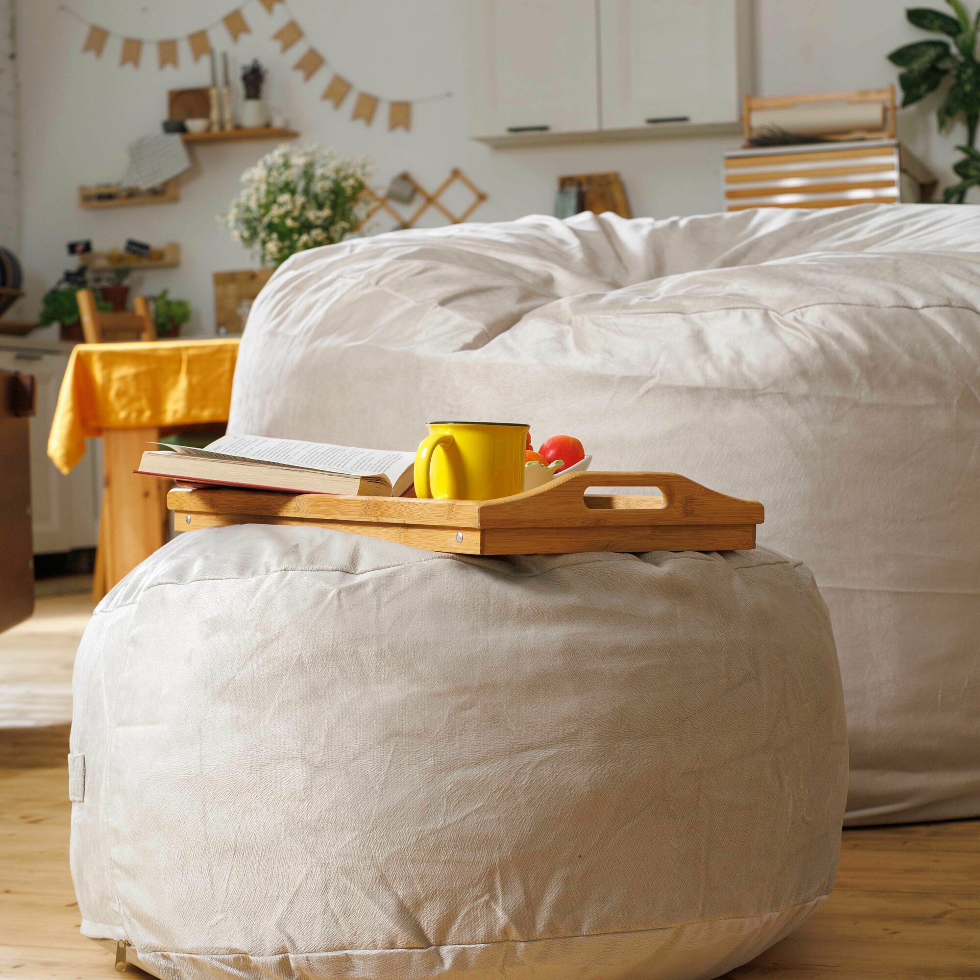 Пуфик в прихожую и для ног Bubble Bag 70х30 бескаркасный пуф антивандальный велюр Кремовый