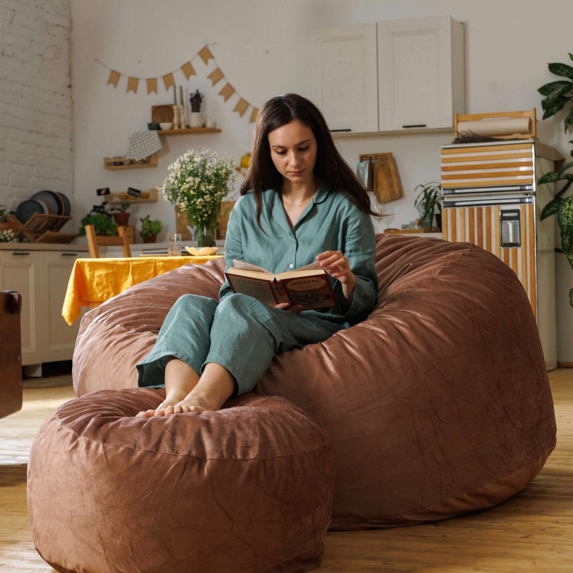 Пуфик в прихожую и для ног Bubble Bag 70х30 бескаркасный пуф антивандальный велюр Коричневый