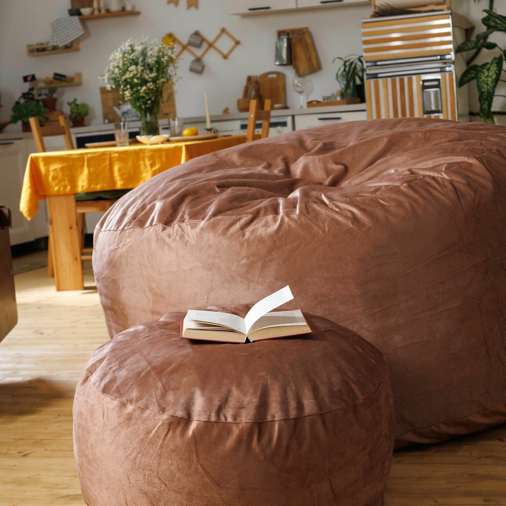 СохранитьПуфик в прихожую и спальню Bubble Bag 70х30 круглый мягкий для ног антивандальный велюр Ореховый интересное:
