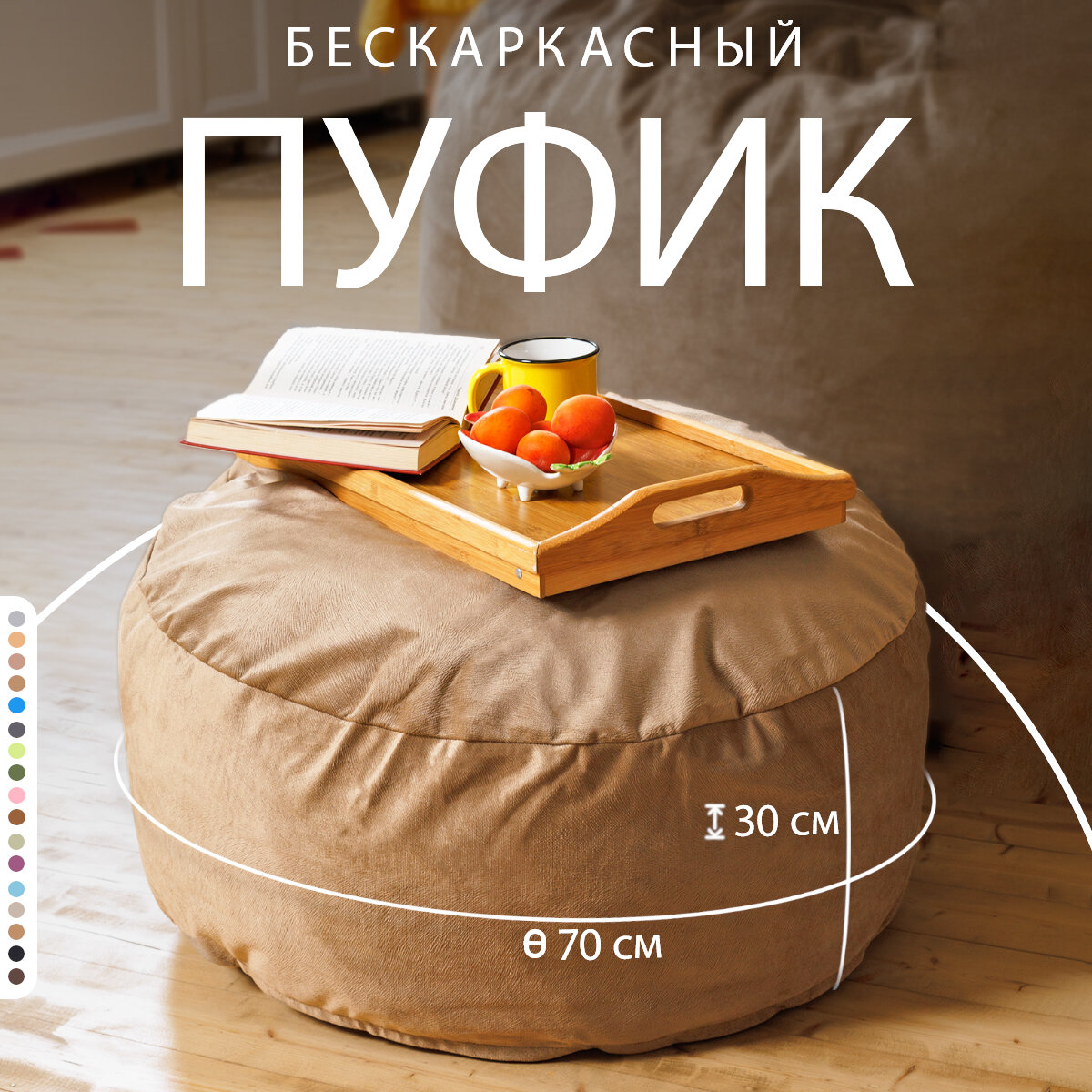 Купить Пуфик в прихожую и спальню Bubble Bag 70х30 круглый мягкий для ног антивандальный велюр Темно-бежевый