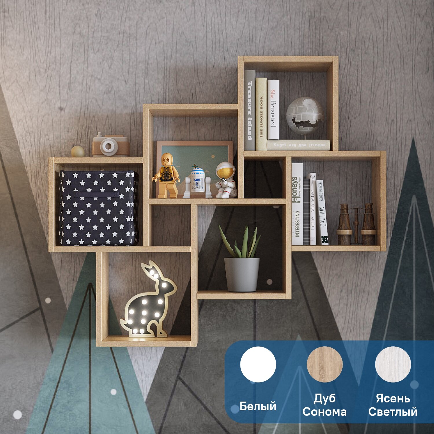 Полка "Квадро" настенная Дуб сонома деревянная для книг в гостиную спальню интересное: