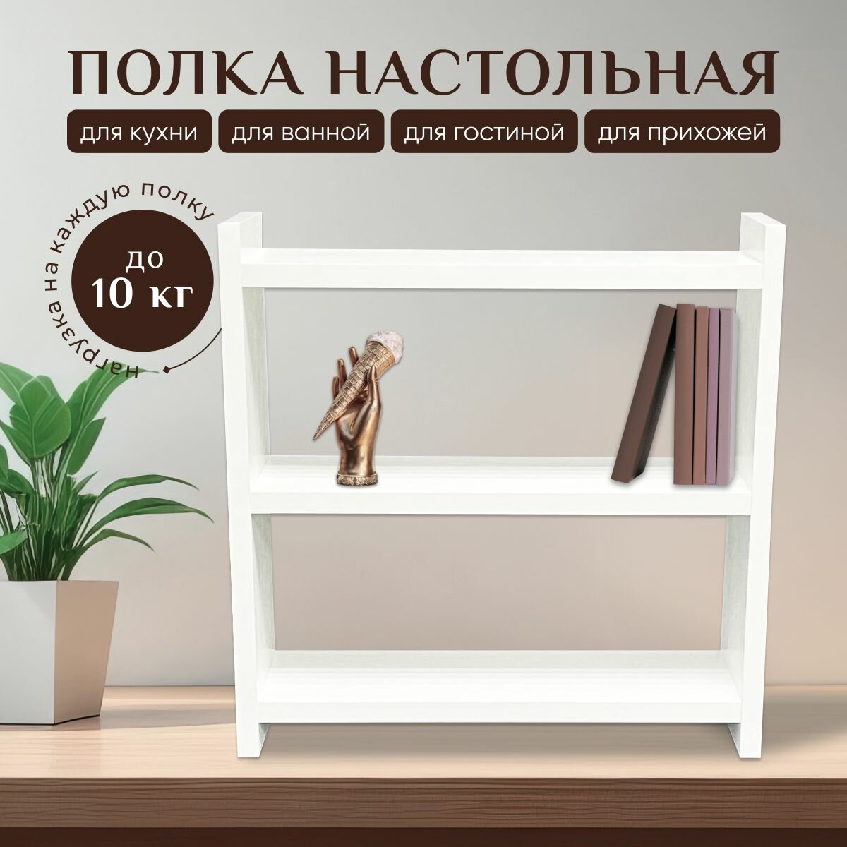 Полка деревянная настольная для книг, на кухню для специй, для учебников, белый, 40 х 40 х 12 см интересное: