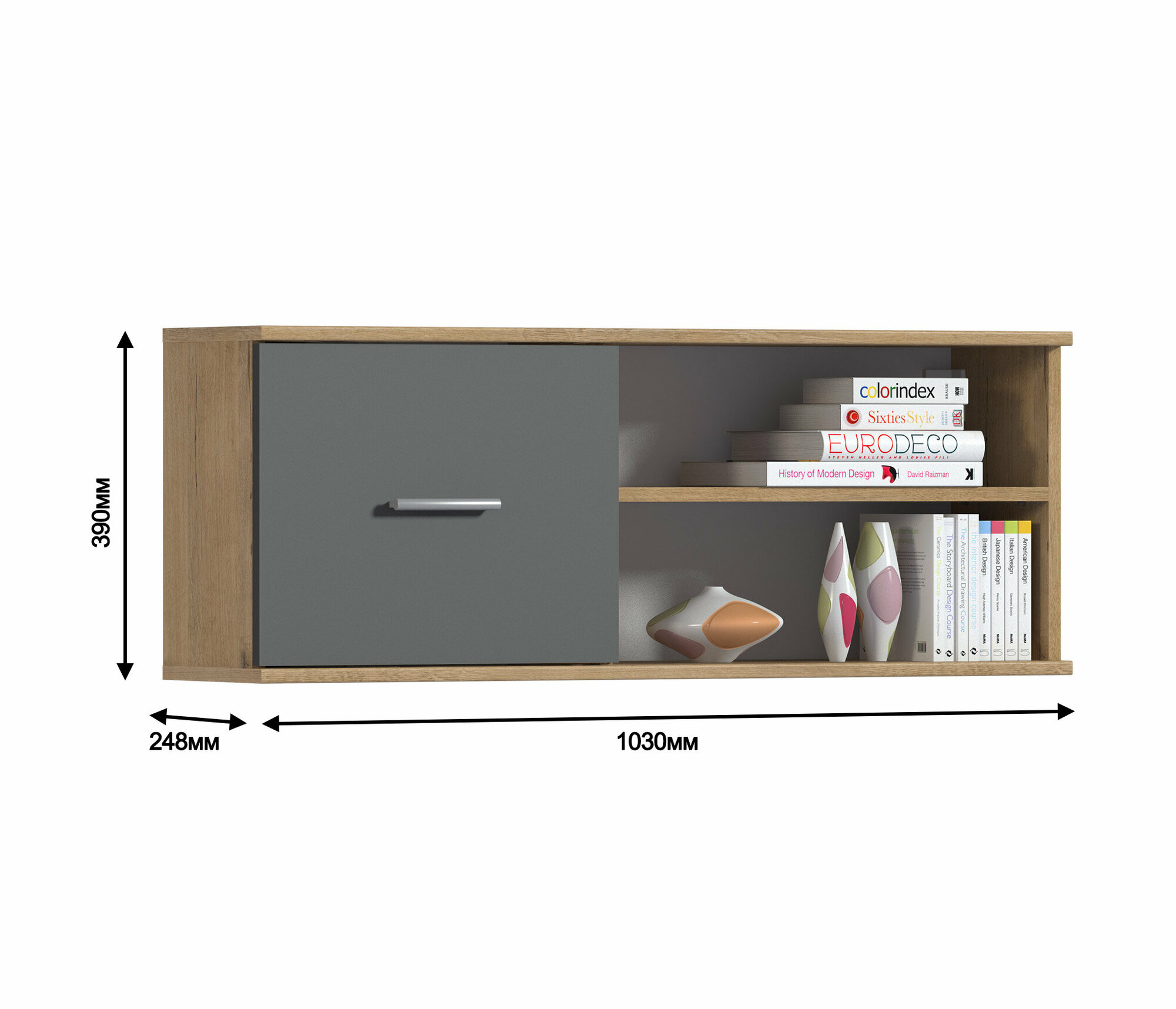 Настенная полка столплит Мамбо СБ-2368 с одной дверцей, с 2 полками, Дуб Бунратти/Диамант серый 103х39х24 см интересное: