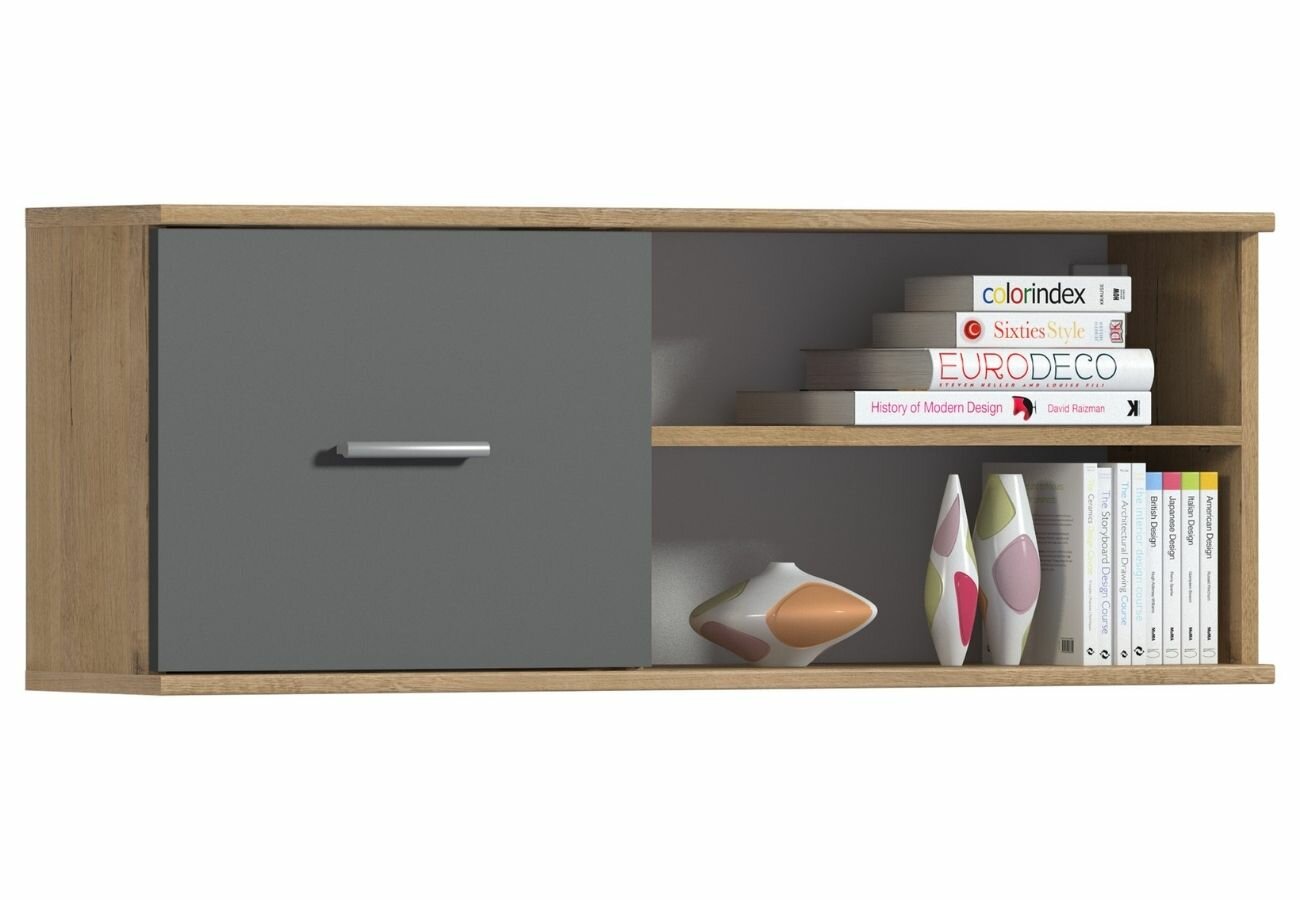 Купить Настенная полка столплит Мамбо СБ-2368 с одной дверцей, с 2 полками, Дуб Бунратти/Диамант серый 103х39х24 см