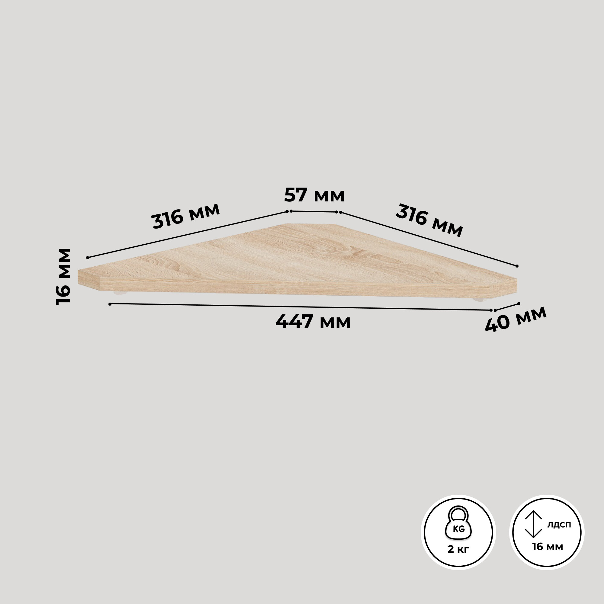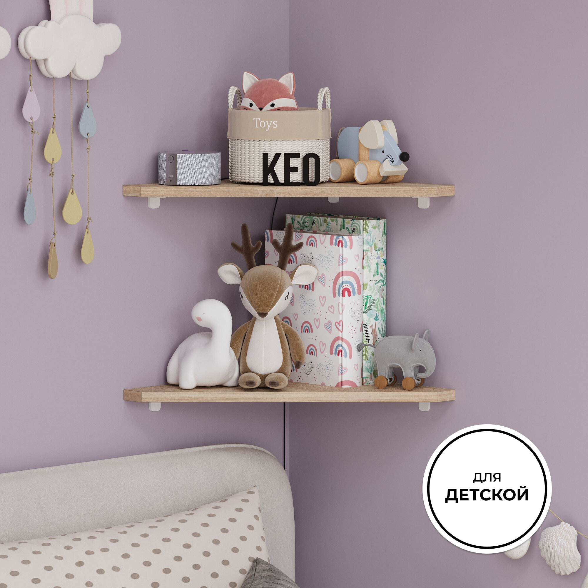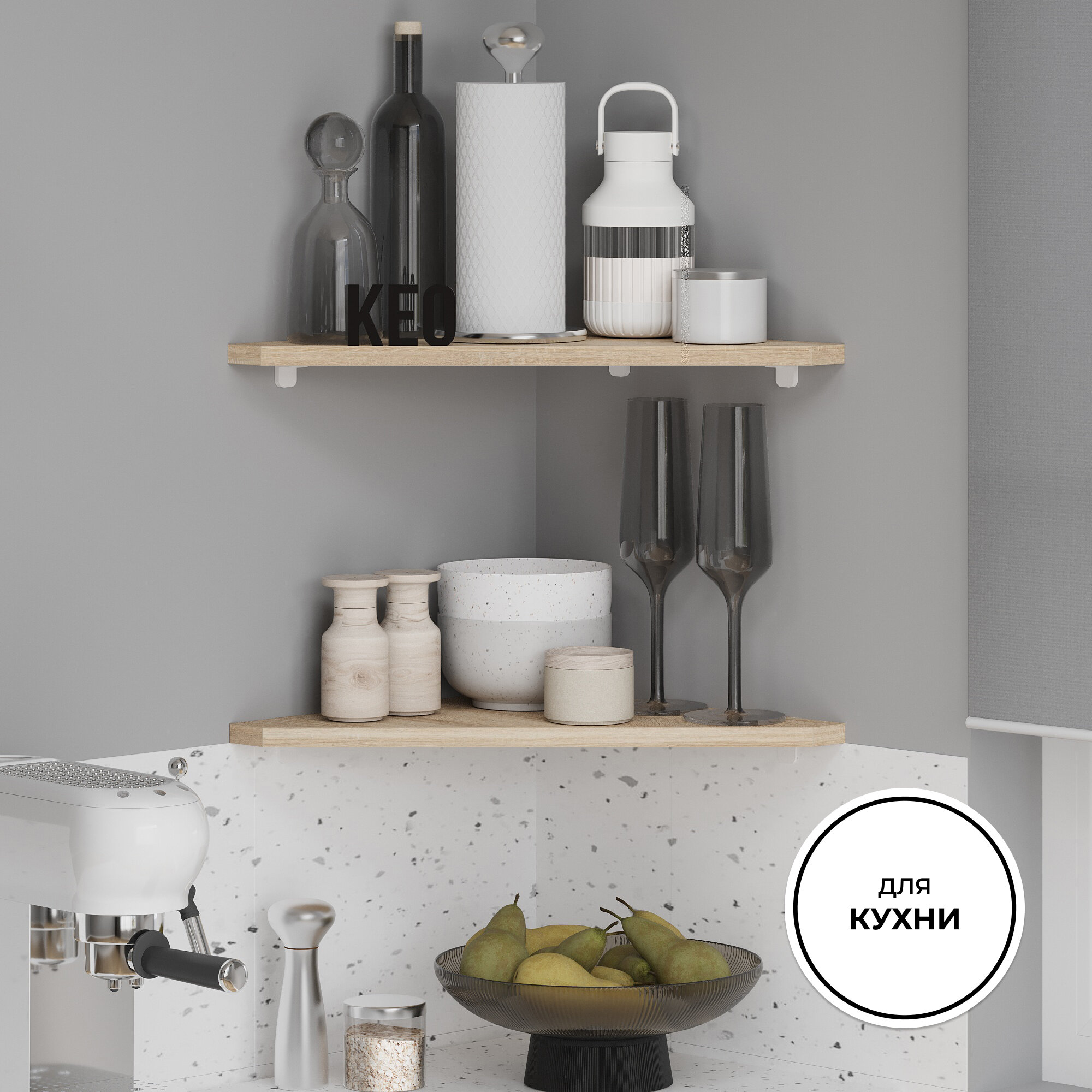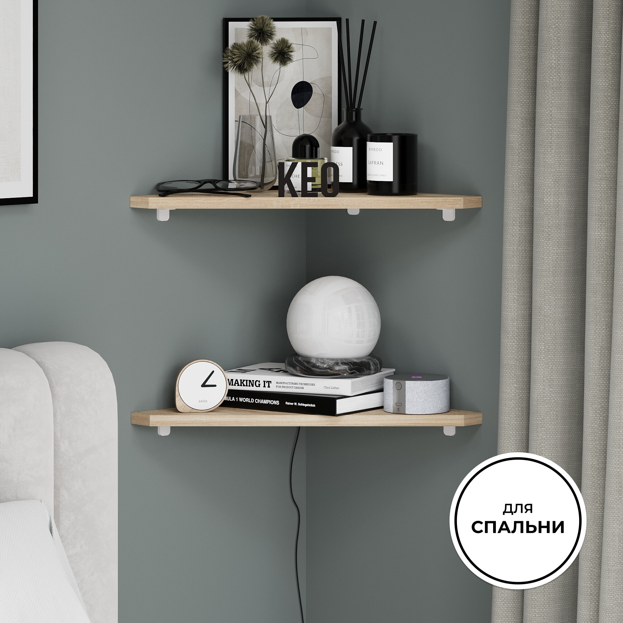 Угловая полка настенная комплект из 3 шт для книг и цветов в спальню кухню детскую туалет Кео СТМ-608 дуб сонома