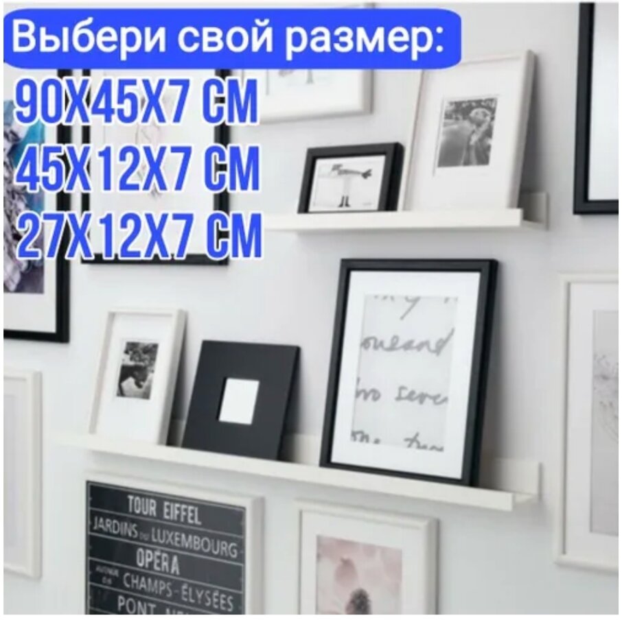 Полка Настенная Прямая Навесная, Для картин, для фотографий, 45х12х7 см, белая, 1 шт.