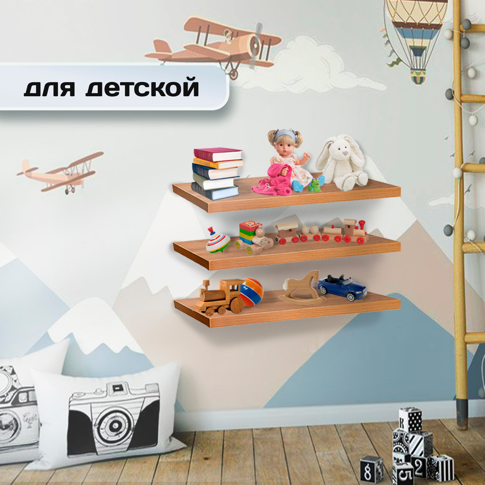 Полка в детскую 200*700*16 Навесная Белая
