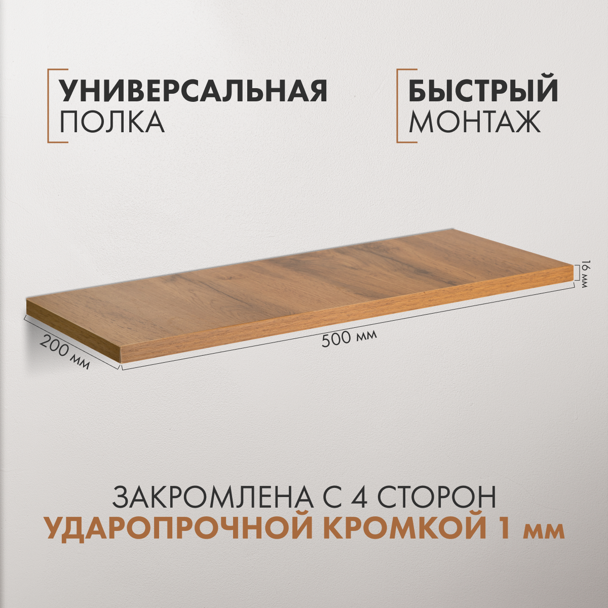 Парящая полка настенная 200*500*16 Навесная Дуб Вотан интересное: