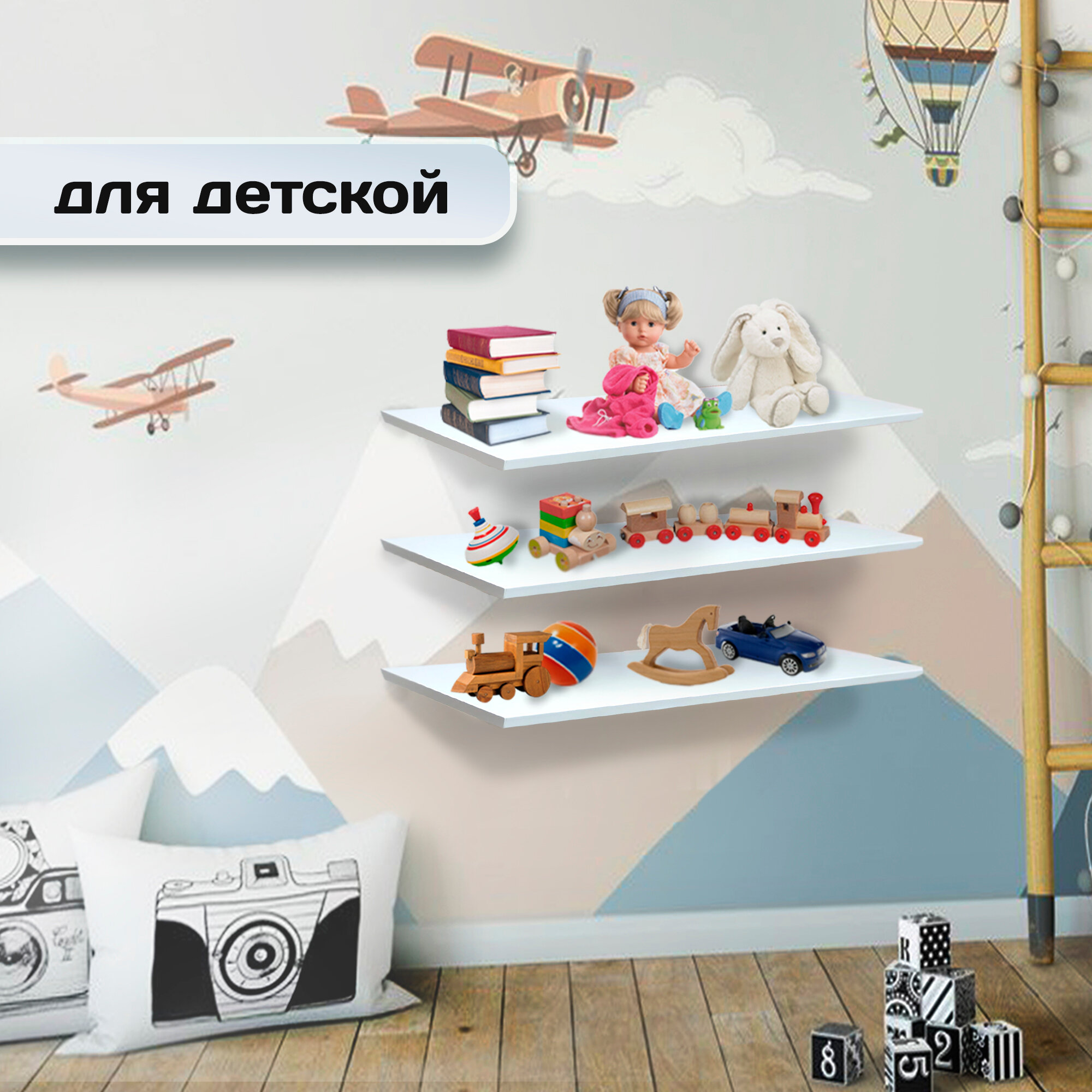 Полка в детскую 200*700*16 Навесная Белая