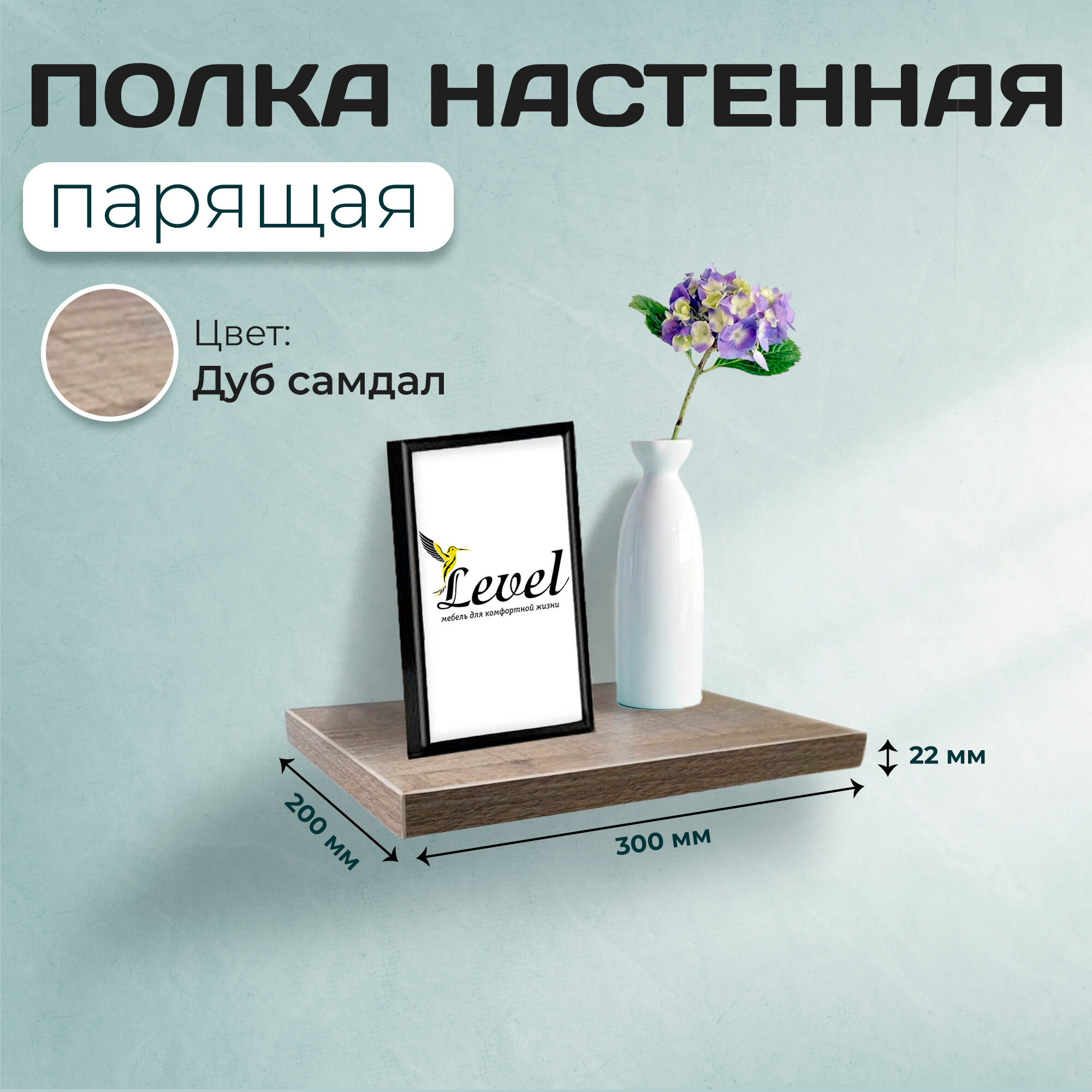 Полка настенная парящая, 20х30х2,2 см, навесная, дуб самдал интересное: