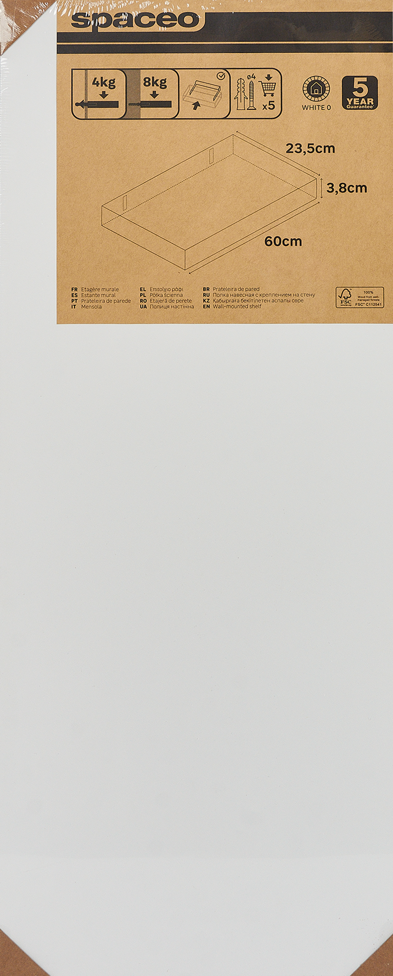 Купить Полка мебельная Spaceo White 60x23.5x3.8 см МДФ цвет белый