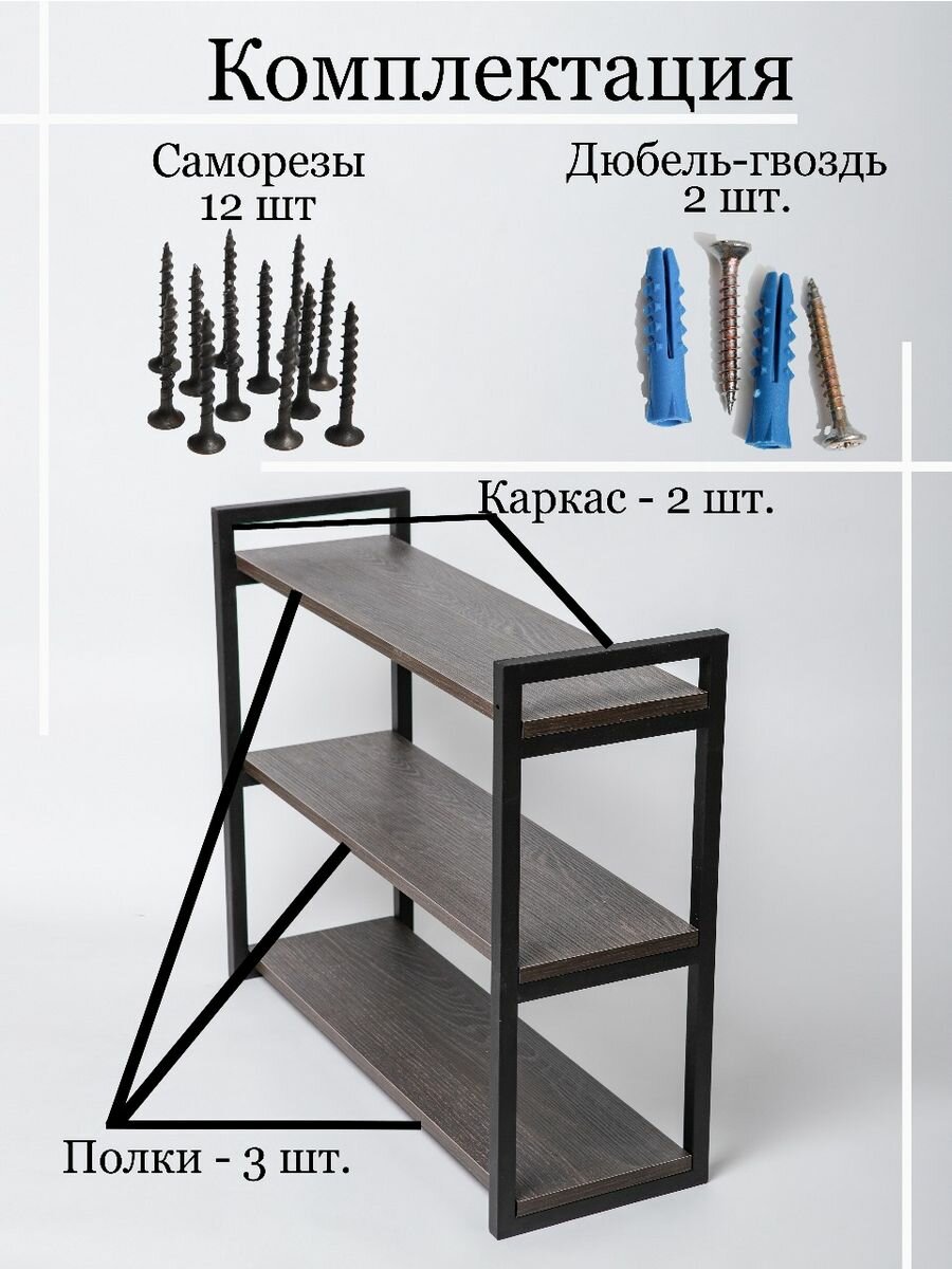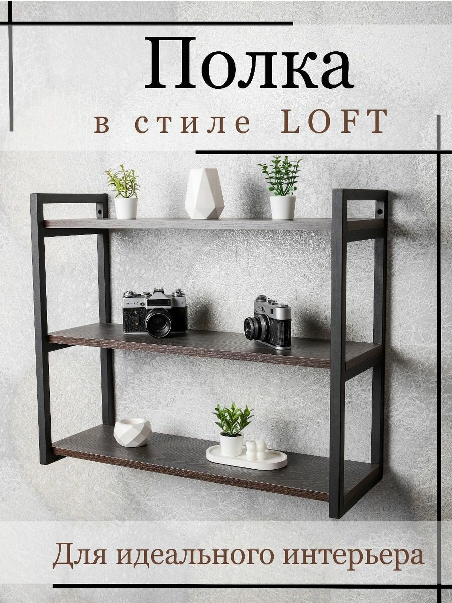 Полка настенная в стиле лофт тройная 49х24х58 см