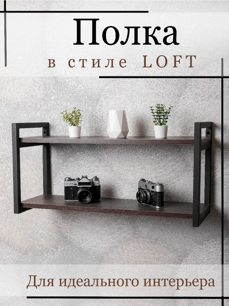 Полка настенная в стиле лофт двойная 49х24х34 см