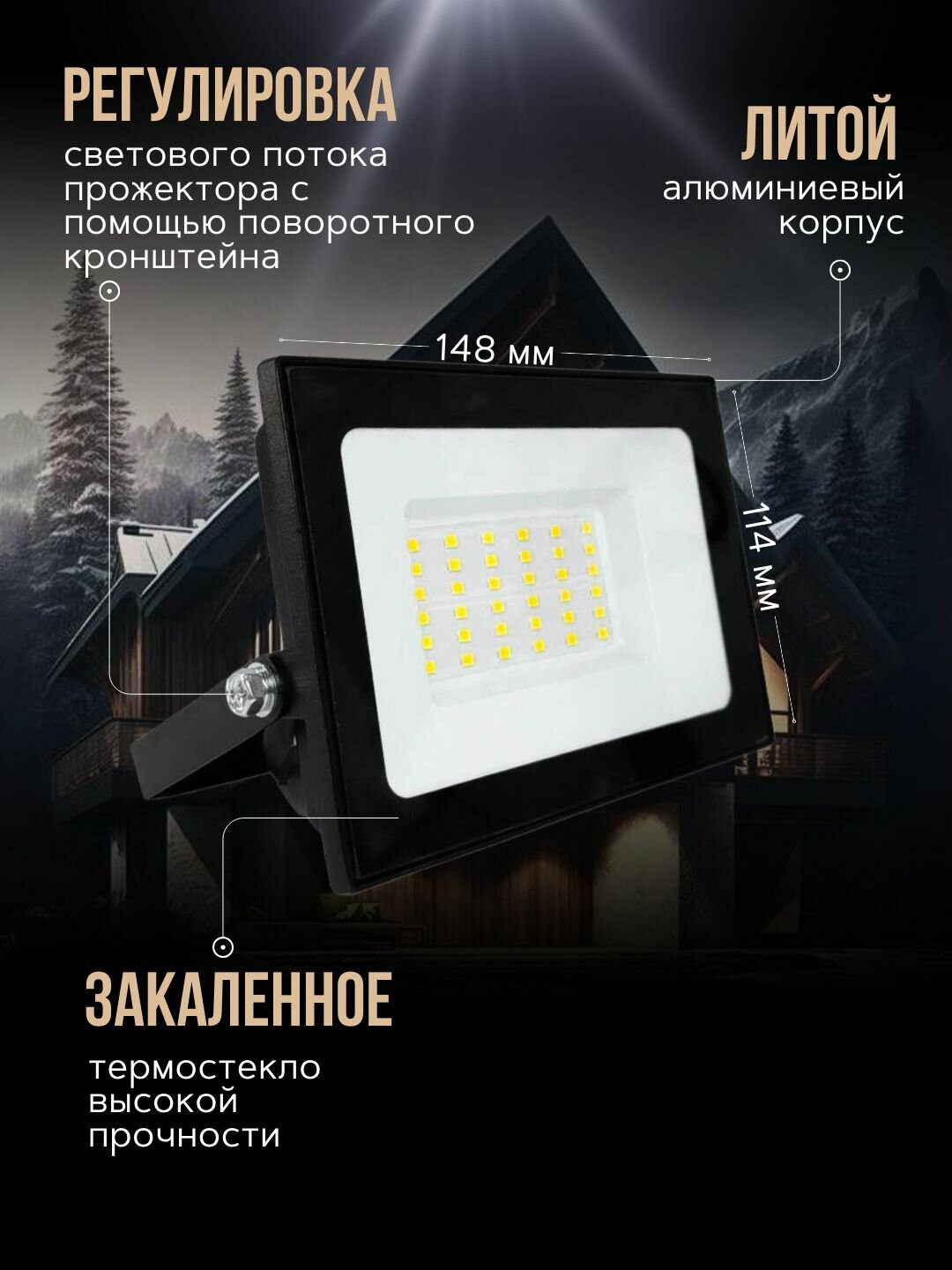 Прожектор LED 30W VLF8-30-6500-B 6500К 3600Лм 220V IP65 черный