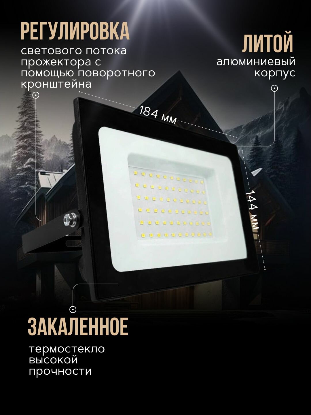 Прожектор LED 50W VLF8-50-6500-B 6500К 6000Лм 220V IP65 черный