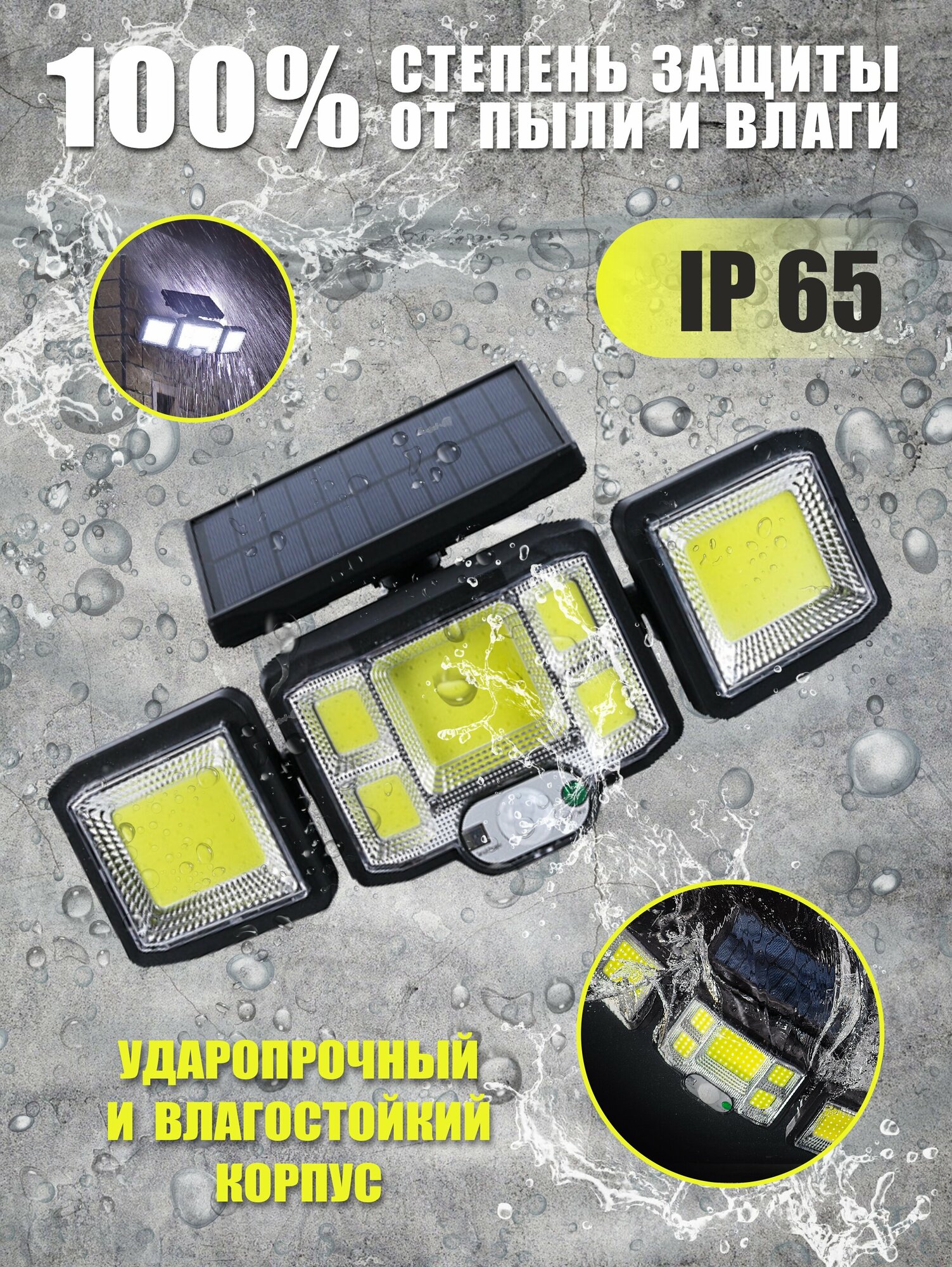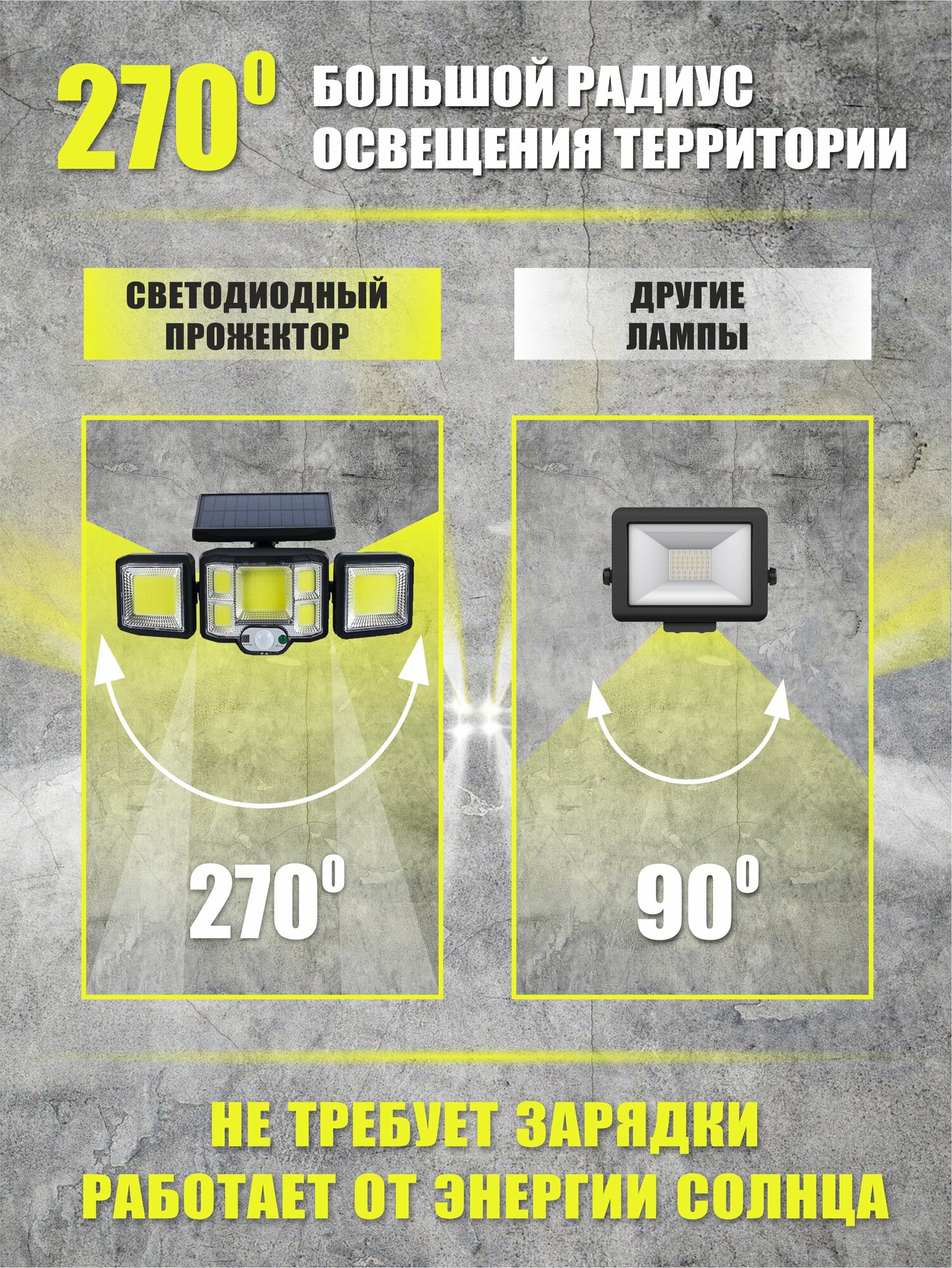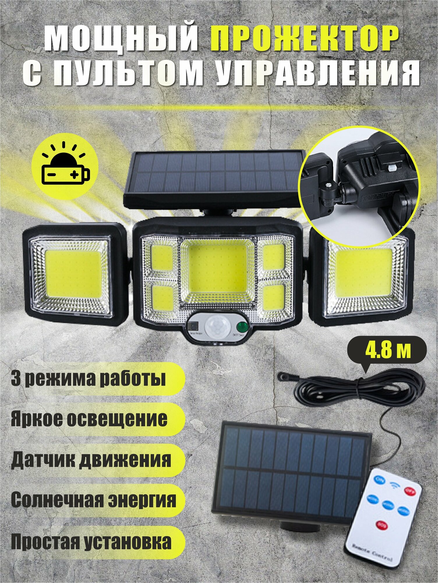 Прожектор уличный тройной, с датчиком движения, на солнечной батарее 192 COB интересное: