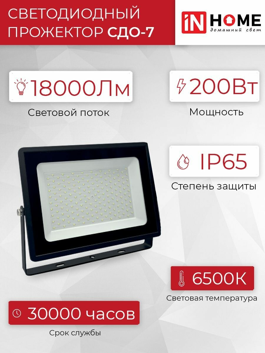 Прожектор светодиодный СДО-7 200Вт 230В 6500К IP65 черный IN HOME интересное: