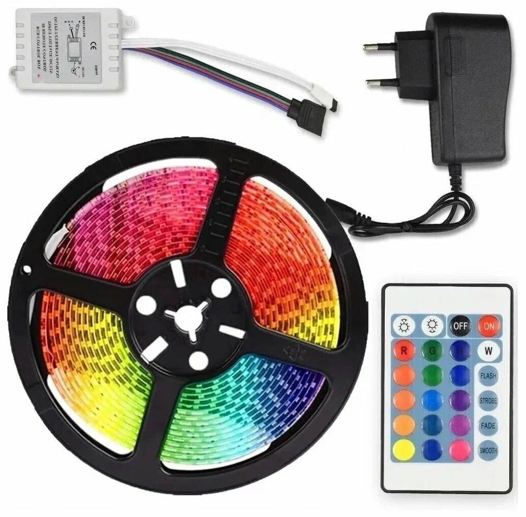 Купить Светодиодная многоцветная RGB лента, 5 м. с блоком питания и пультом
