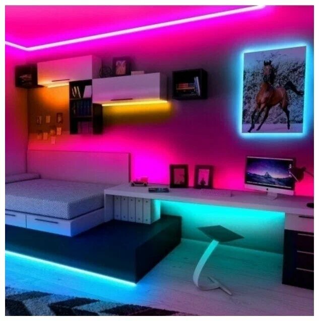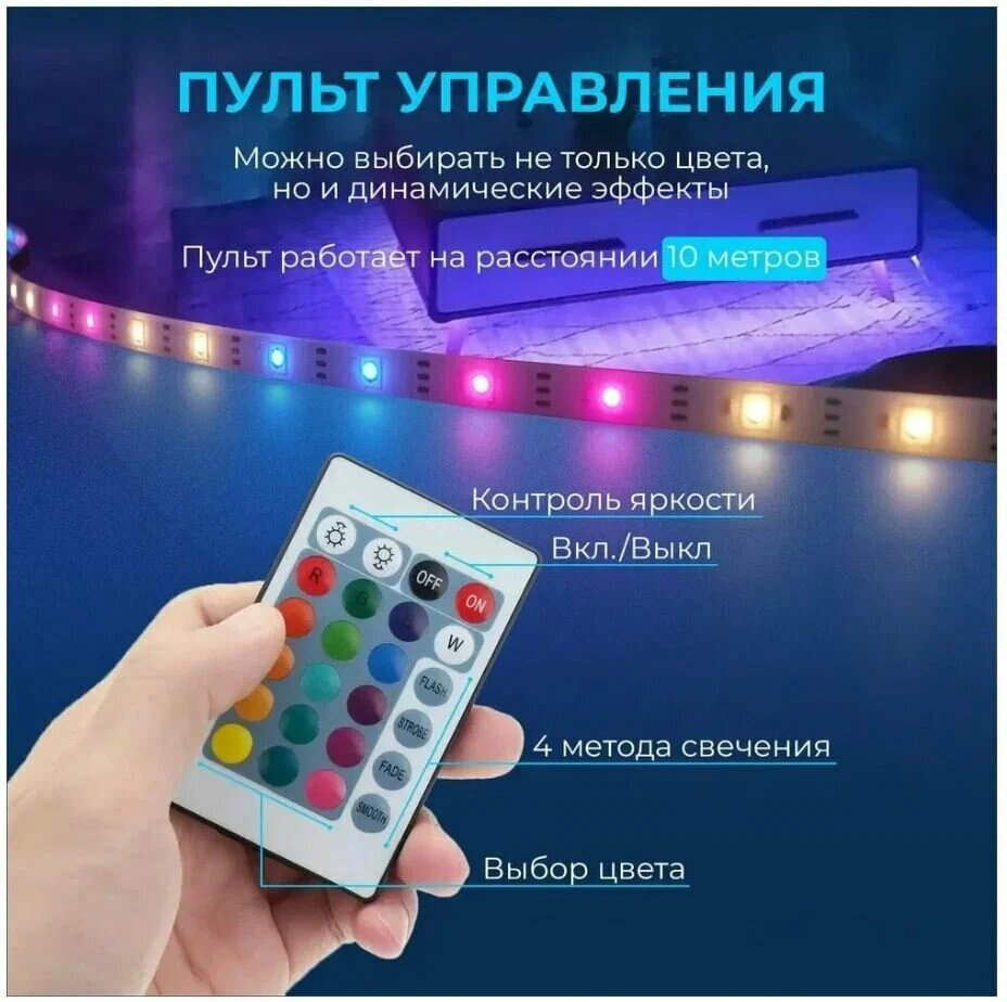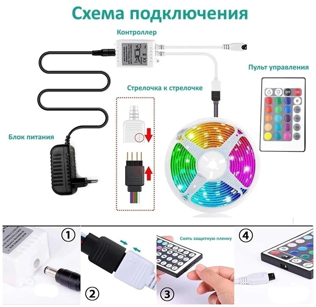 Светодиодная многоцветная RGB лента, 5 м. с блоком питания и пультом интересное: