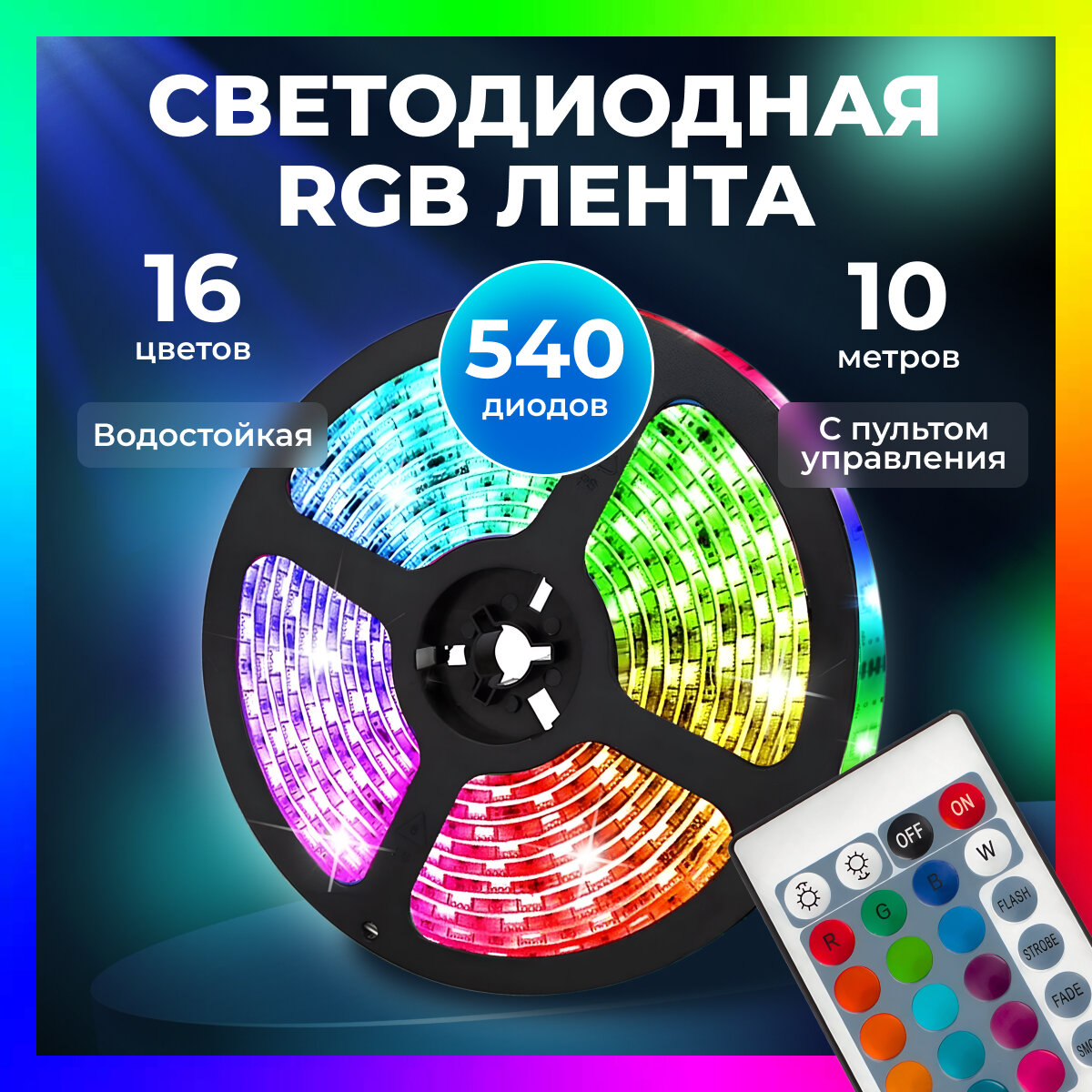 Светодиодная LED RGB лента 10 метров с пультом многоцветная интересное: